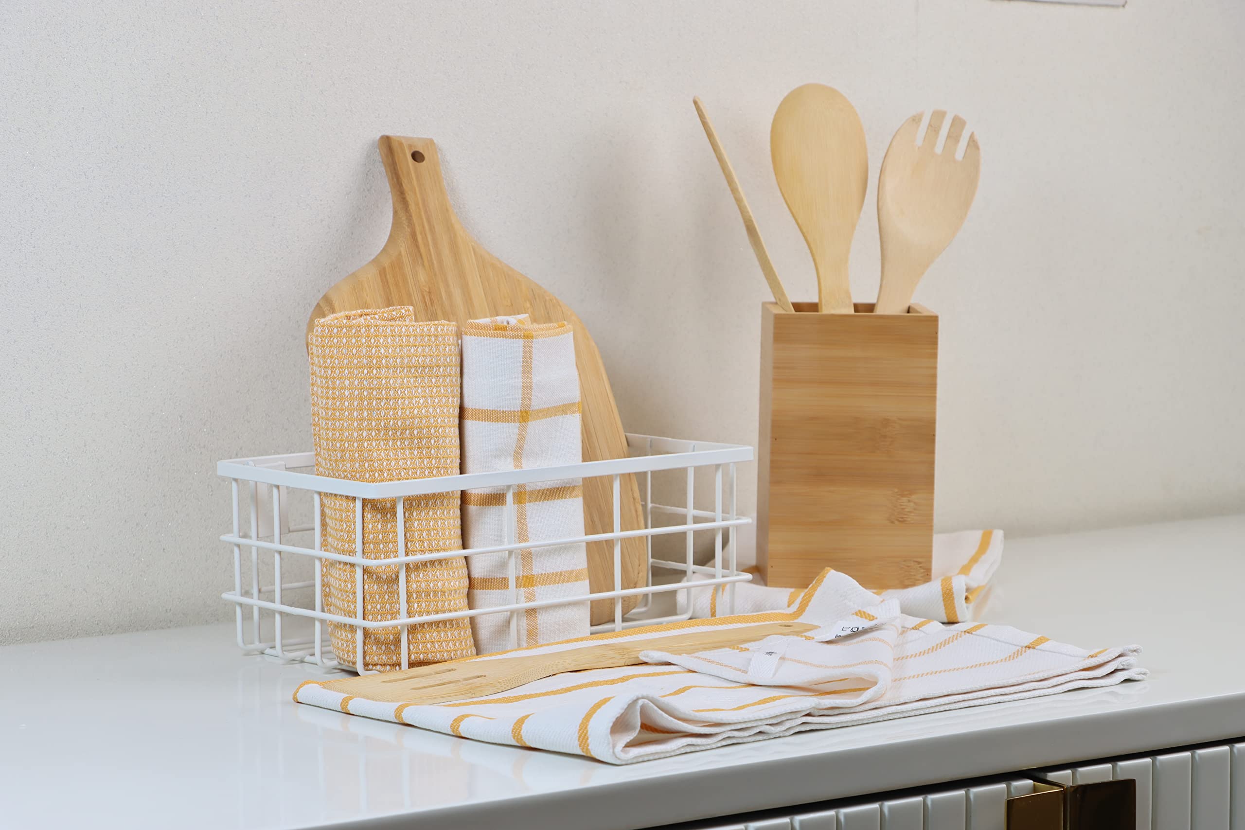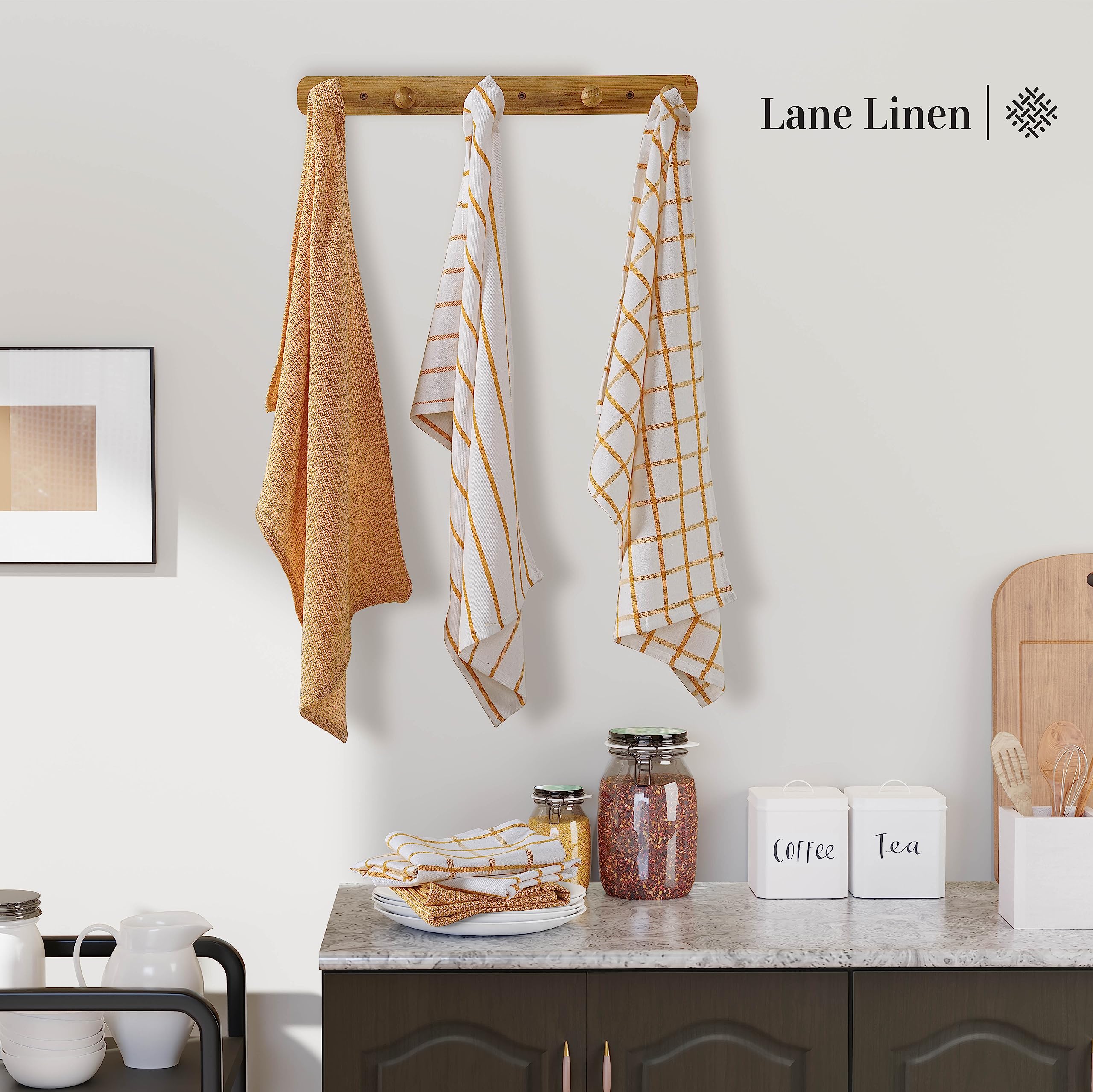 Value Pack : Lane Linen kitchen towels and dishcloths sets includes 6 Pack Yellow Dish Towels For Drying Dishes. Great alternative to paper towels. With a convenient size of 18 x 28" anyone can handle these kitchen linen sets and you will never run out of dish towels again!