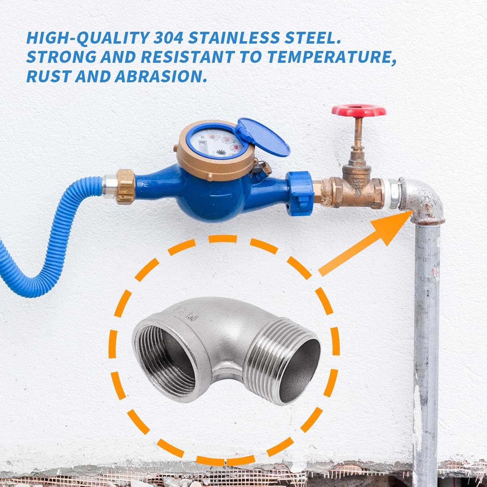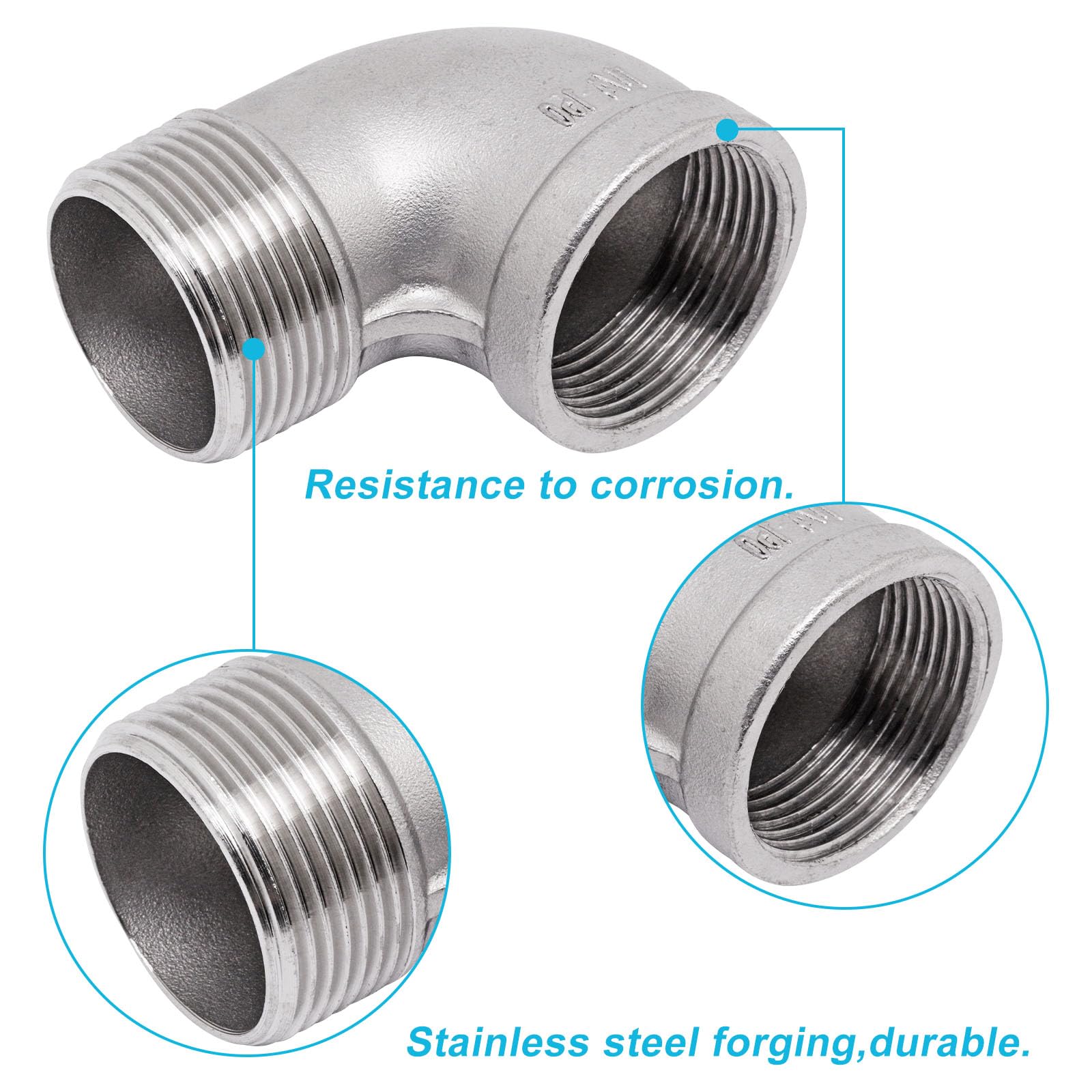Premium Material: The male to female pipe coupling is made of high-quality 304 stainless steel,which is strong and resistant to temperature,rust and abrasion. Forged 304 stainless steel structure and the smooth thread design make the accessories better engage with the object to enhance the fixation