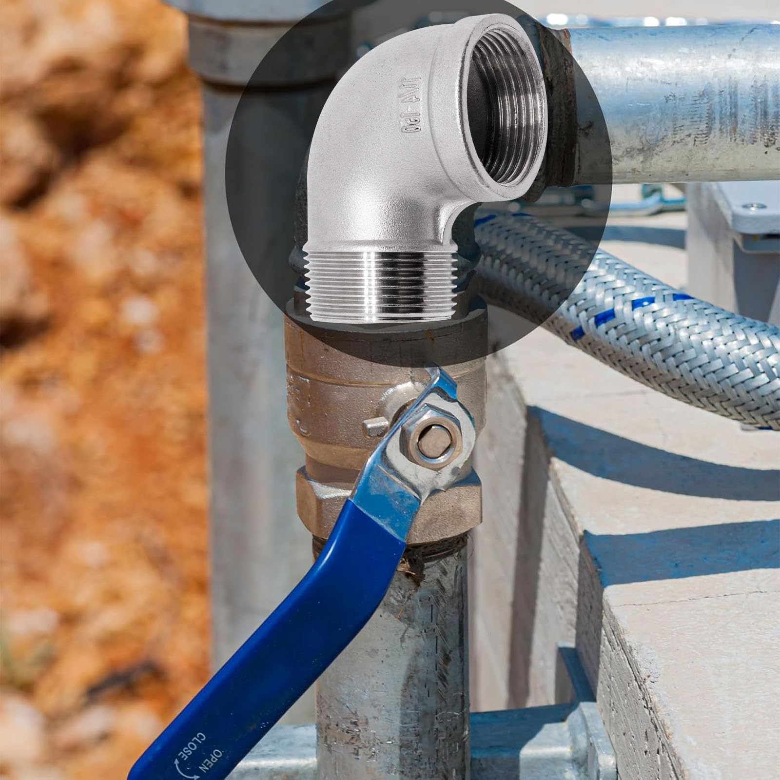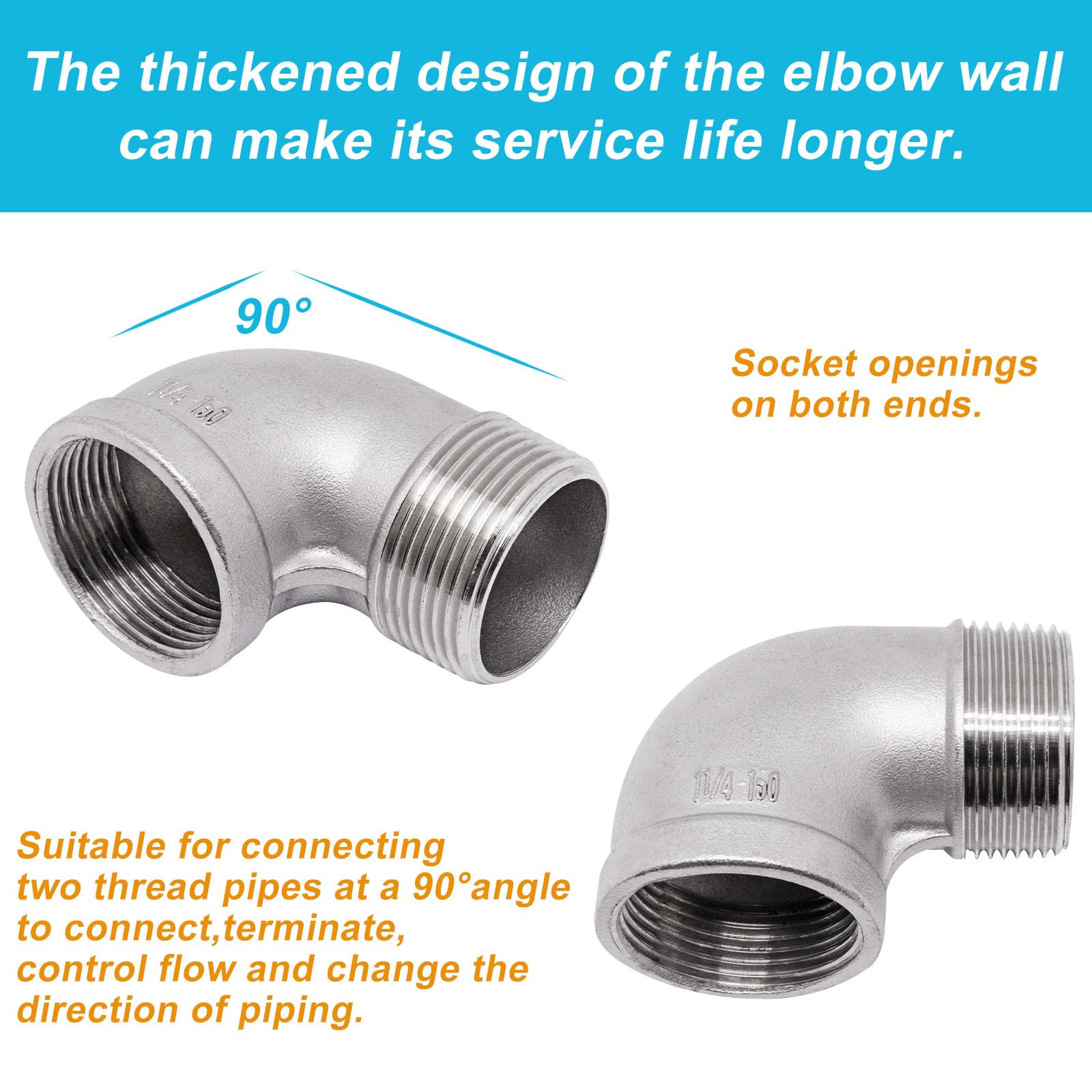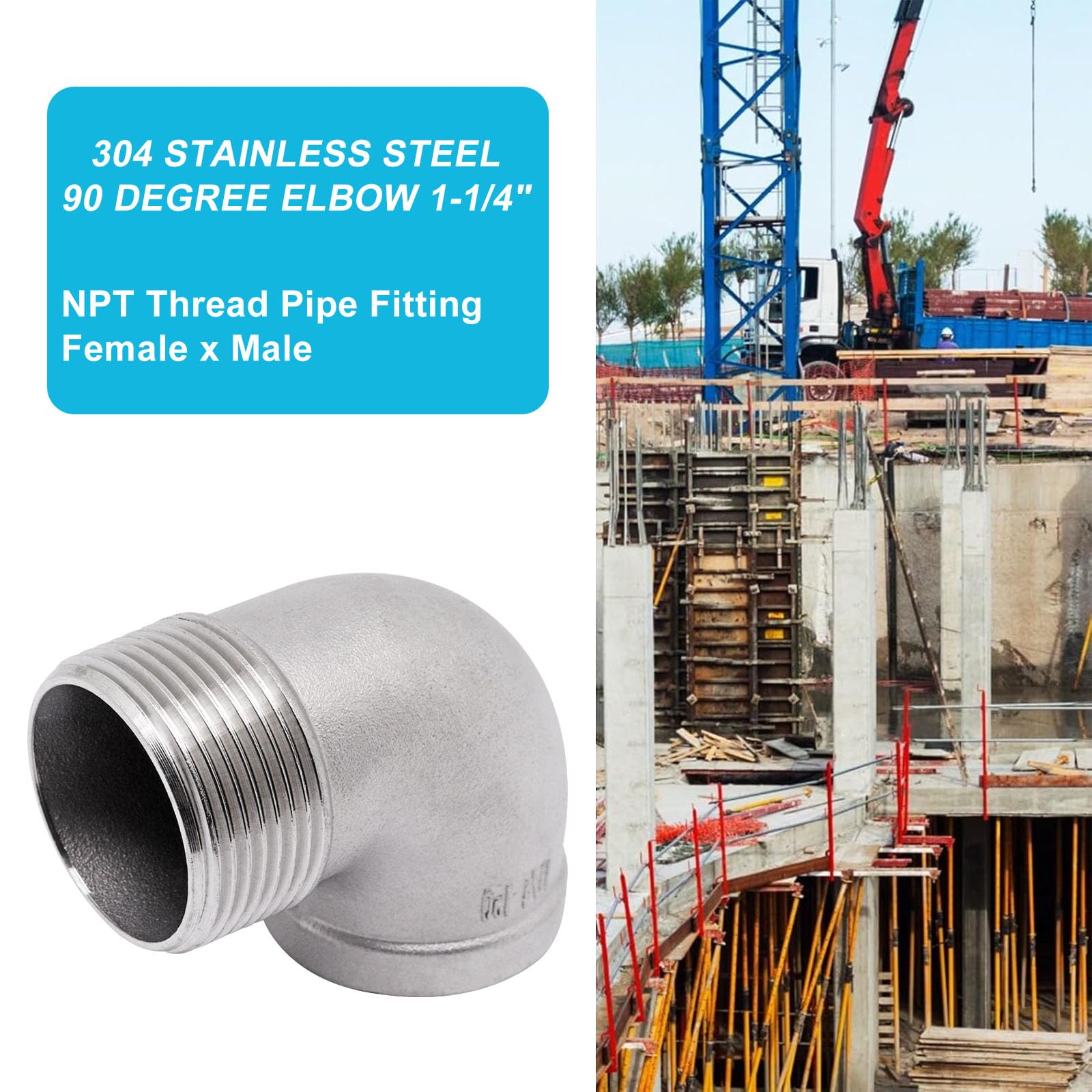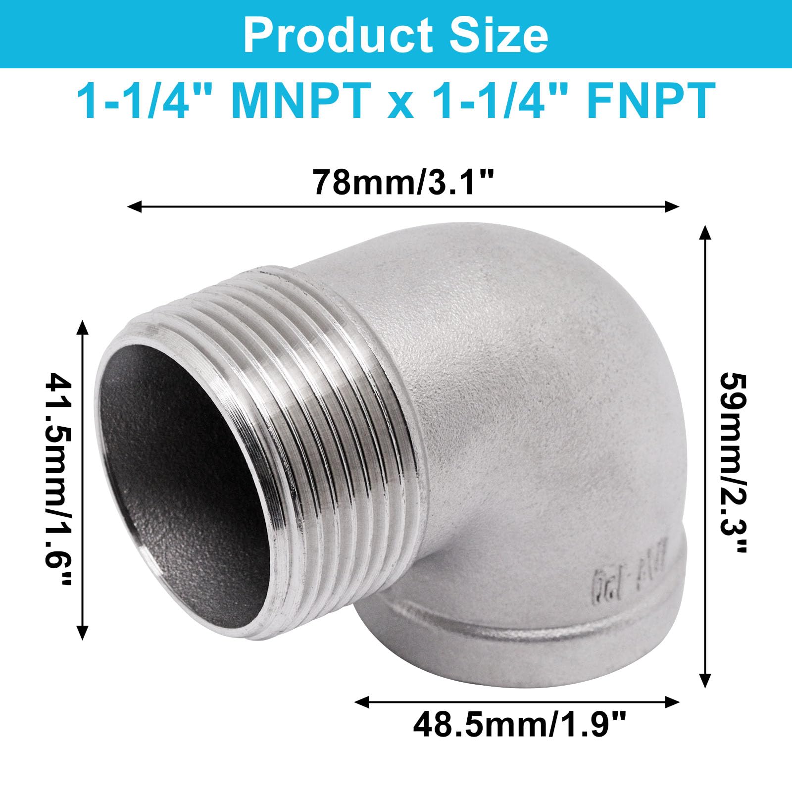 Package Content: 1 Pcs 1-1/4" NPT male to 1-1/4" NPT female thread 90 degree elbow. This elbow fitting for connecting pipes or fittings with different end types. (NOTE: NPT thread size does not actual diameter, it is only nominal pipe size)