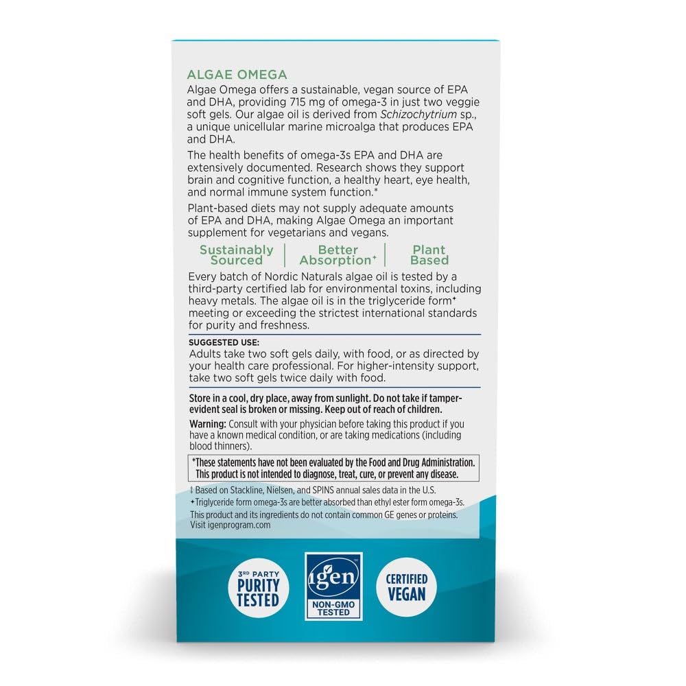 WHY ALGAE OMEGA - Nordic Naturals Algae Omega can help vegetarians & vegans meet their daily recommended serving of omega-3 EPA + DHA.