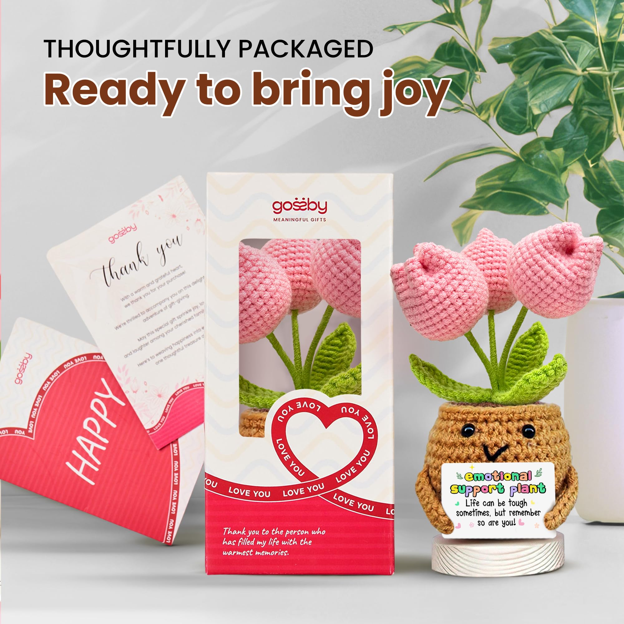 💕An Inspirational Gift for Women: this EMOTIONAL SUPPORT PLANT positive tulip flower doll crochet will embrace your loved one in a warm hug. This one will surely bring a big smile to his/ her face.