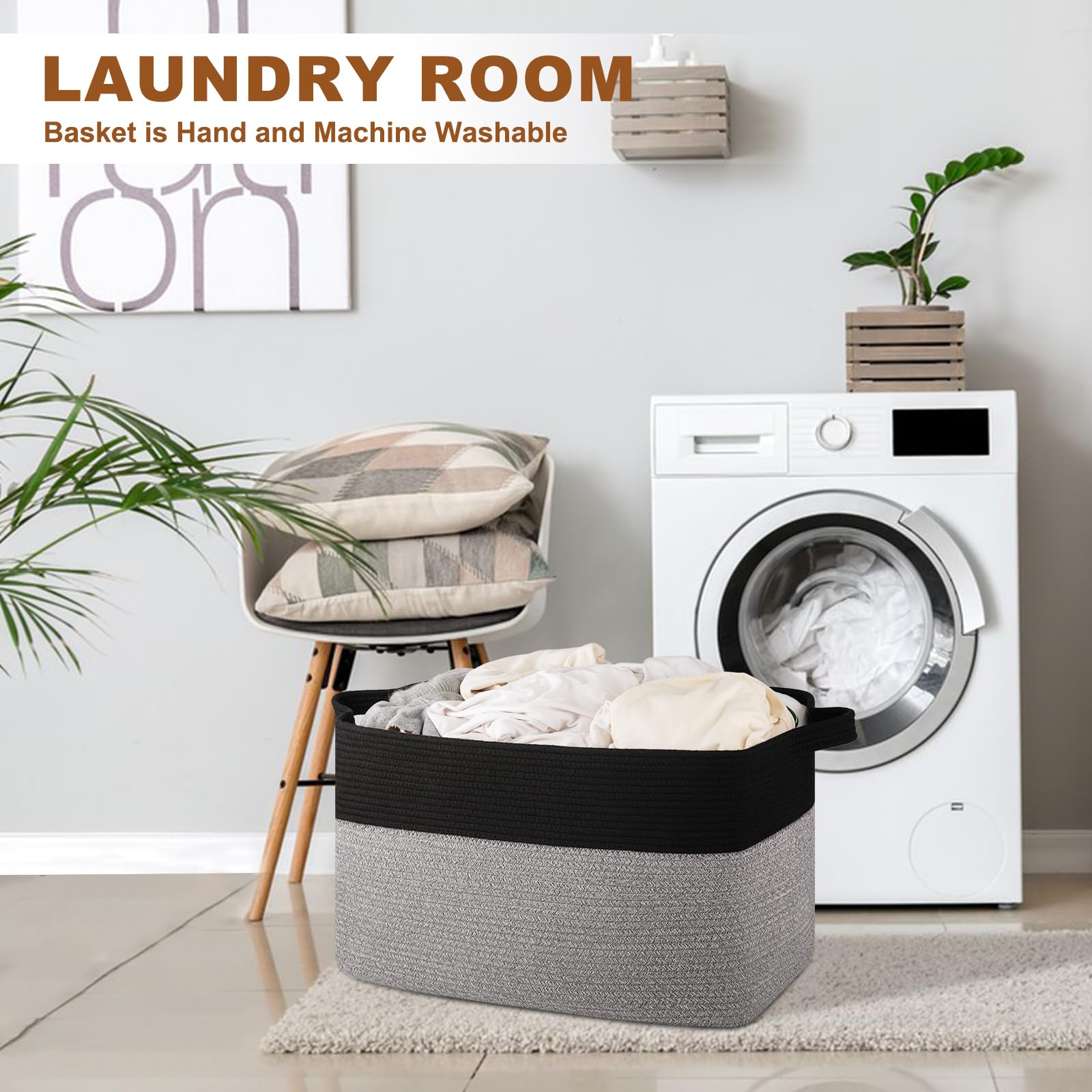【MULTI-PURPOSE CHOICE】: Many people are stocking these extra large basket to organize pillows, blankets, clothes, magazines, diapers, toys or towels, The rectangular clothes storage bins compared to similar products are more suitable for keeping your everyday home life more organized