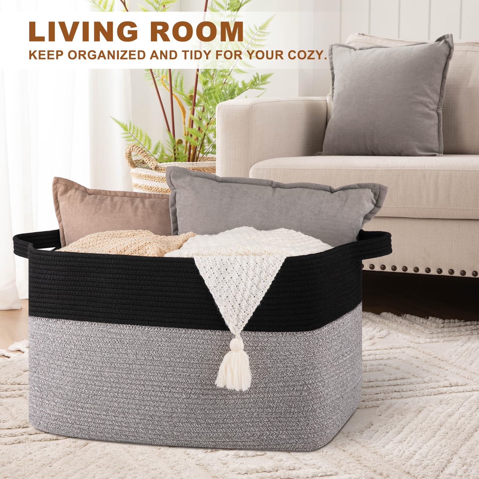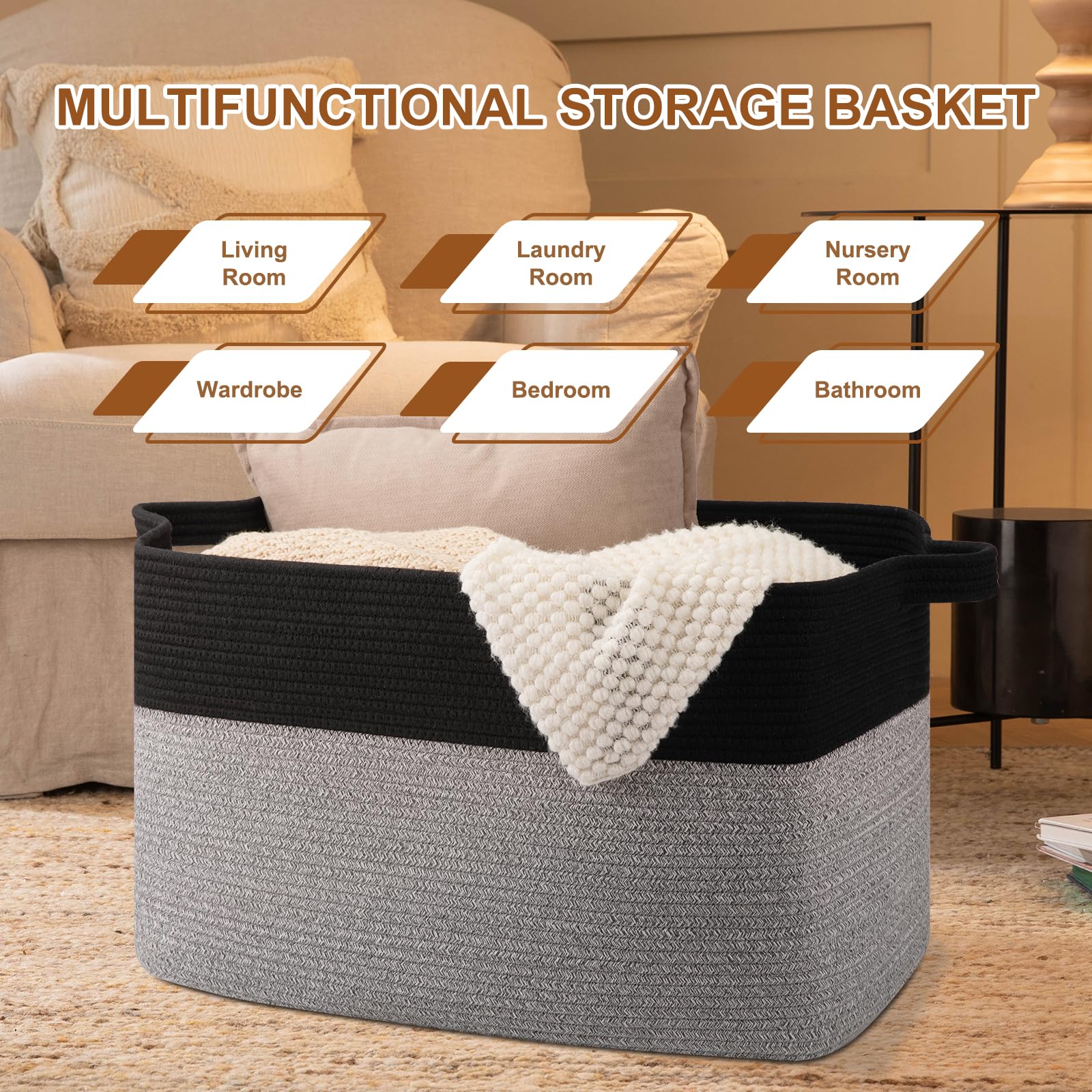 【100% NATURAL HANDMADE】: Our blanket basket made of 100% cotton rope, soft material without any chemicals. No need to worry about scratching clothes or hurting skin, suitable for families with babies or pets. This rope basket is superdurable and hold their shape well
