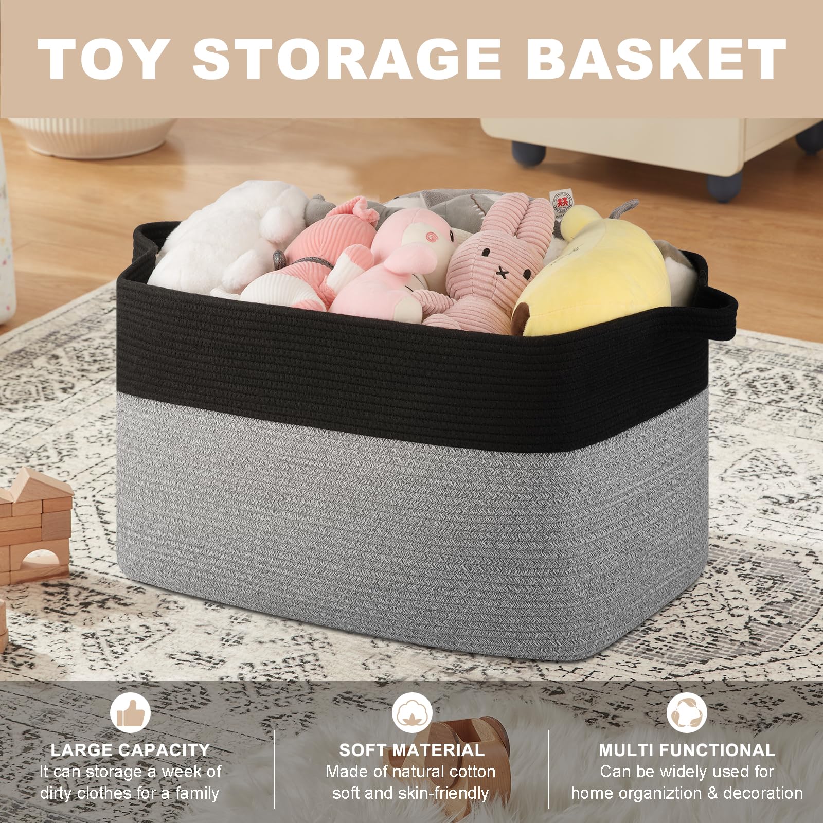 【STRUDY HANDLE STORAGE BASKET】: The large storage basket feature two sturdy handles, making it easy to carry from room to room.Even heavy things inside. Kids can easily organize and access their toys in this toy basket