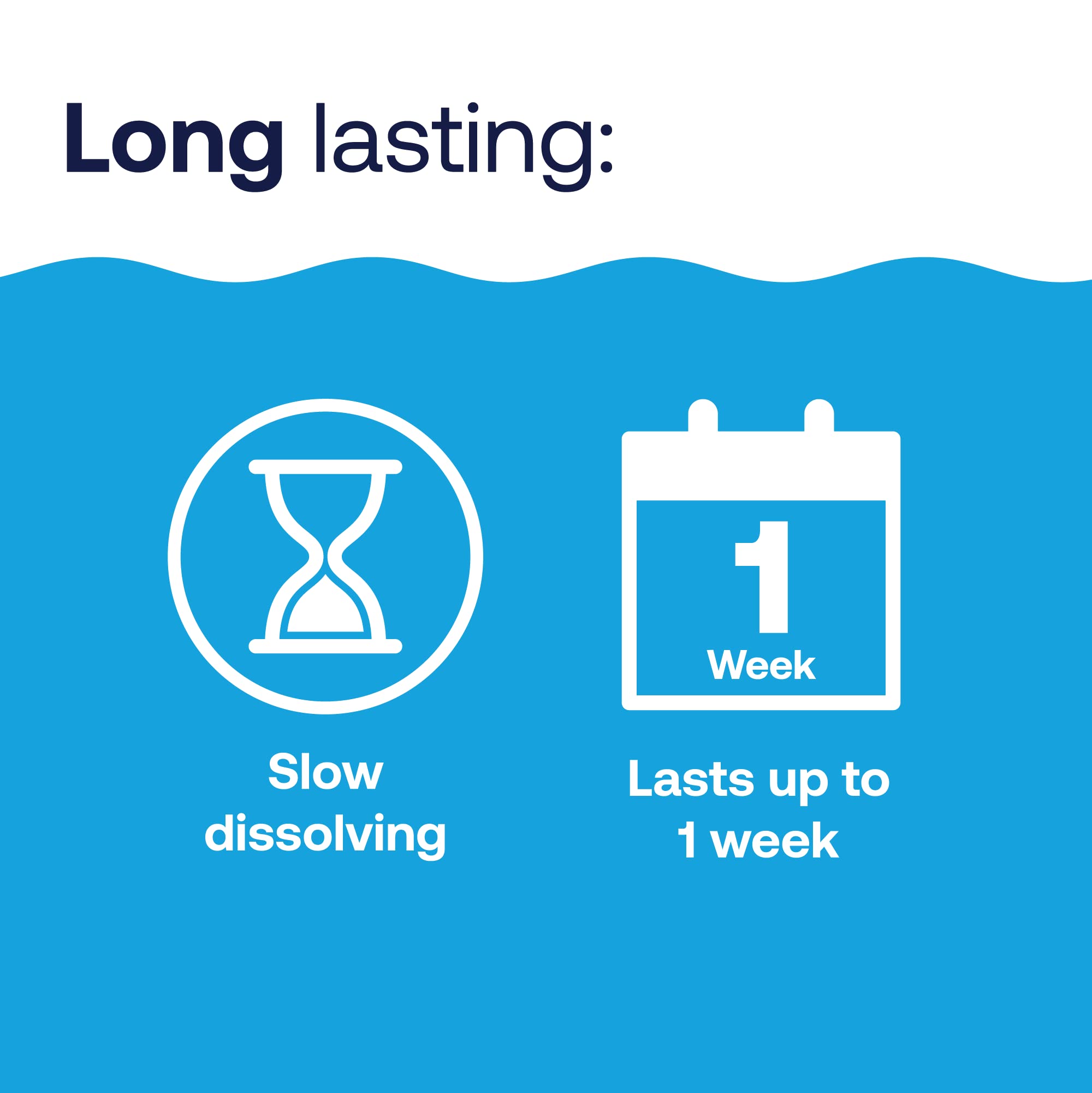 SLOW DISSOLVING, LONG LASTING: Sun protected for longer chlorine life, HTH Chlorine Tabs dissolve slowly and last up to one week