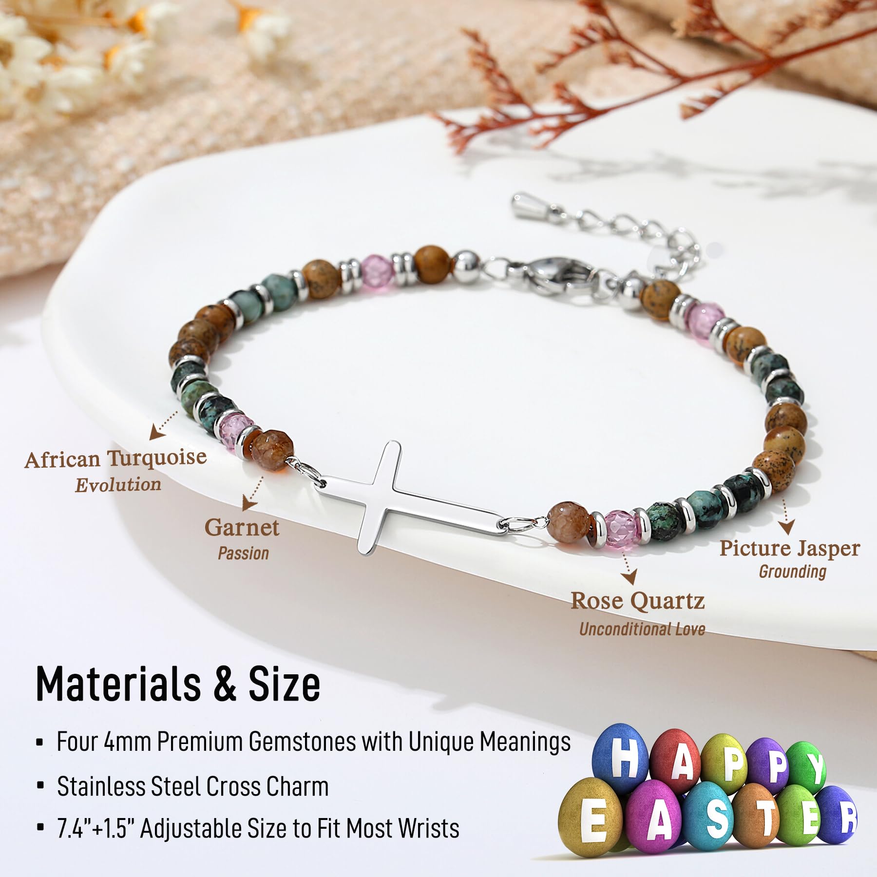 【 Premium Quality 】Handmade with 4mm colorful natural earthy-tones stones and hypoallergenic 316L stainless steel beads, this bracelet is both lightweight and durable. The tarnish-resistant materials ensure lasting beauty, making it a perfect piece for daily wear and a timeless addition to your faith jewelry collection.