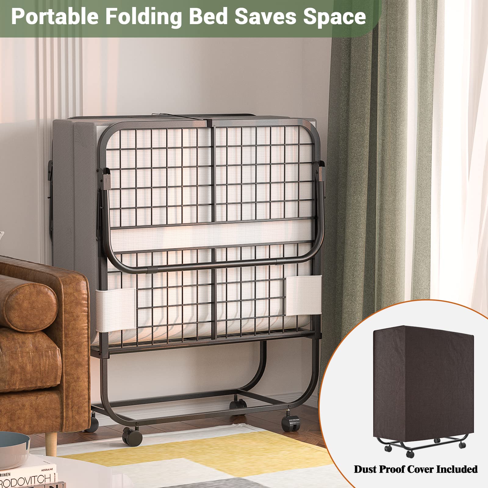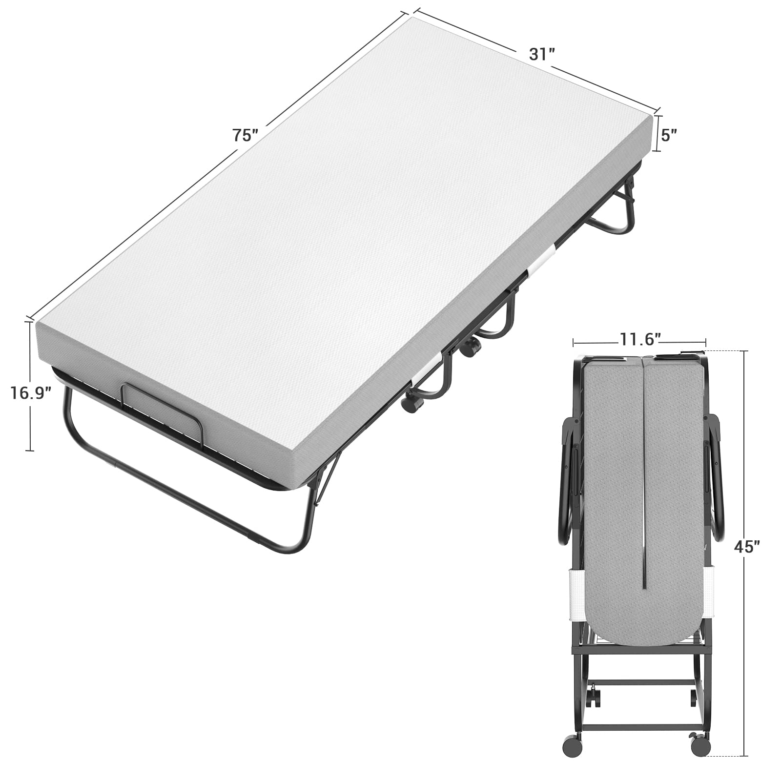 ✔️【Foldable Design & Space-Saving】The folding bed can be folded in simple steps by one person at any time. It measures only a slim 12.8" thick when you fold it. Designed in a compact size, the portable bed can save space and is easy to store in the corner after folding. Folded dimensions: 31"W x 11.6"D x 45"H - Open Dimensions: 31"W x 75"D x 16.9"H.