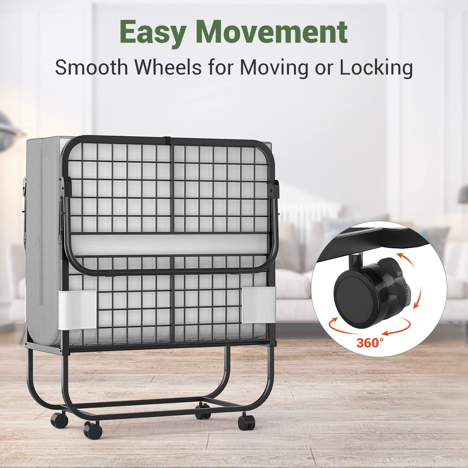 ✔️【Sturdy & Durable】Build with a high-quality steel frame and reinforced structure, this rollaway bed has good stability and strong load-bearing capacity, bearing a maximum load of 300 lbs. The powder-coated surface features medium rust and scratch resistance for long-term use.