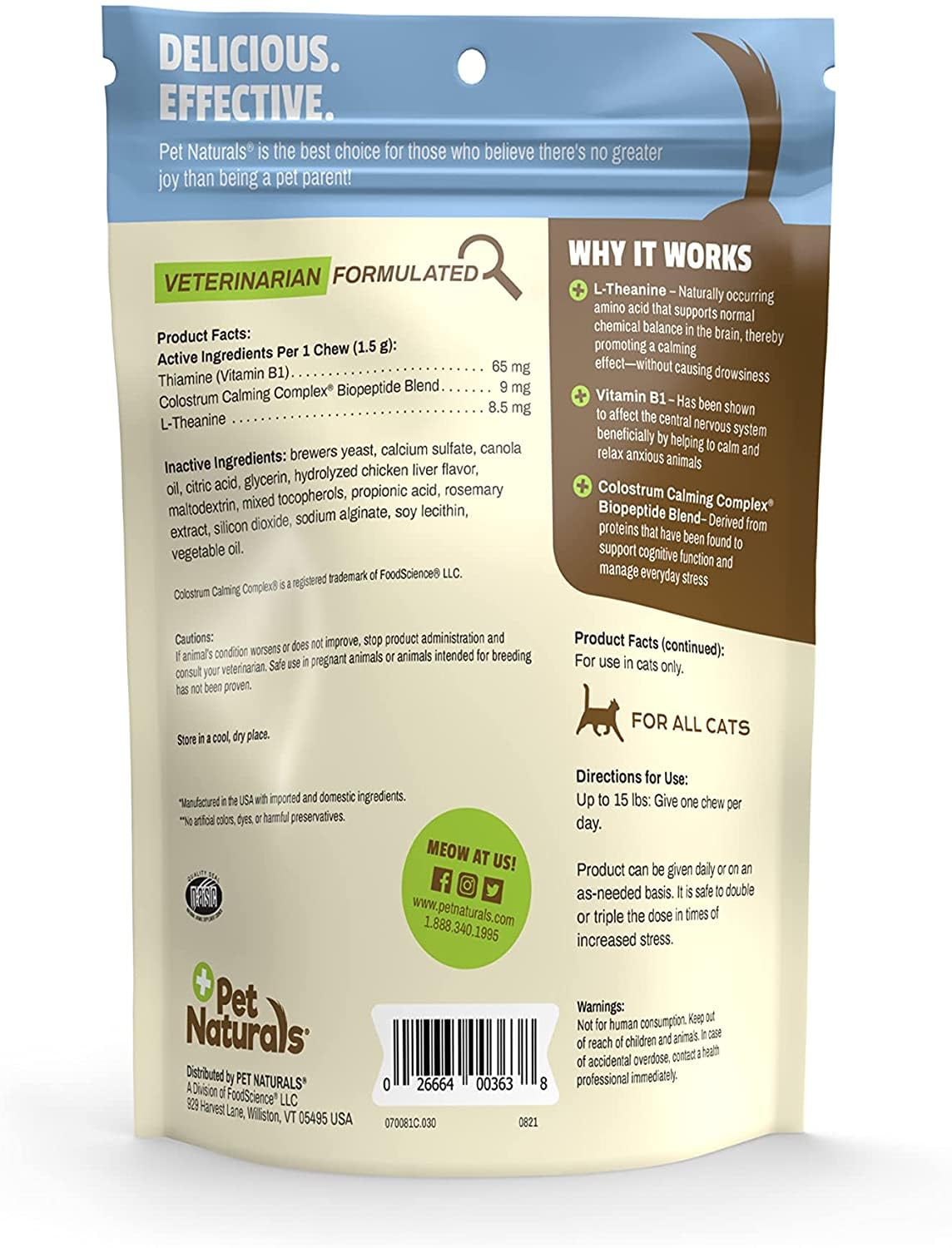BEHAVIORAL AND STRESS SUPPORT - Each bite sized chew helps keep your cat in a relaxed and calm state with Thiamine, Colostrum Calming Complex and L-Theanine