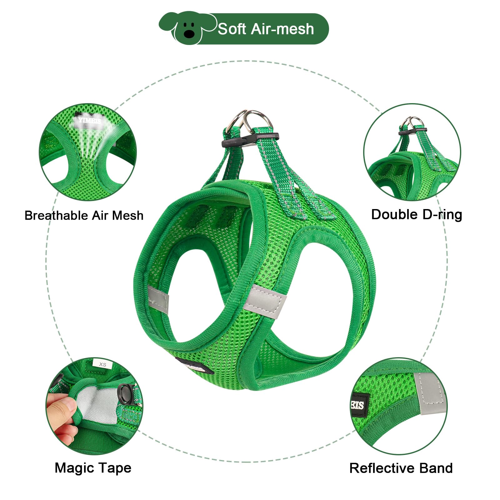 【Step-In Design, Simple】Effortlessly slip this harness on or off your pup in seconds, Step in, Clip&Go, so easy; Triple security features of strong closure, Double D-ring&Buckle ensures no accidental detachment