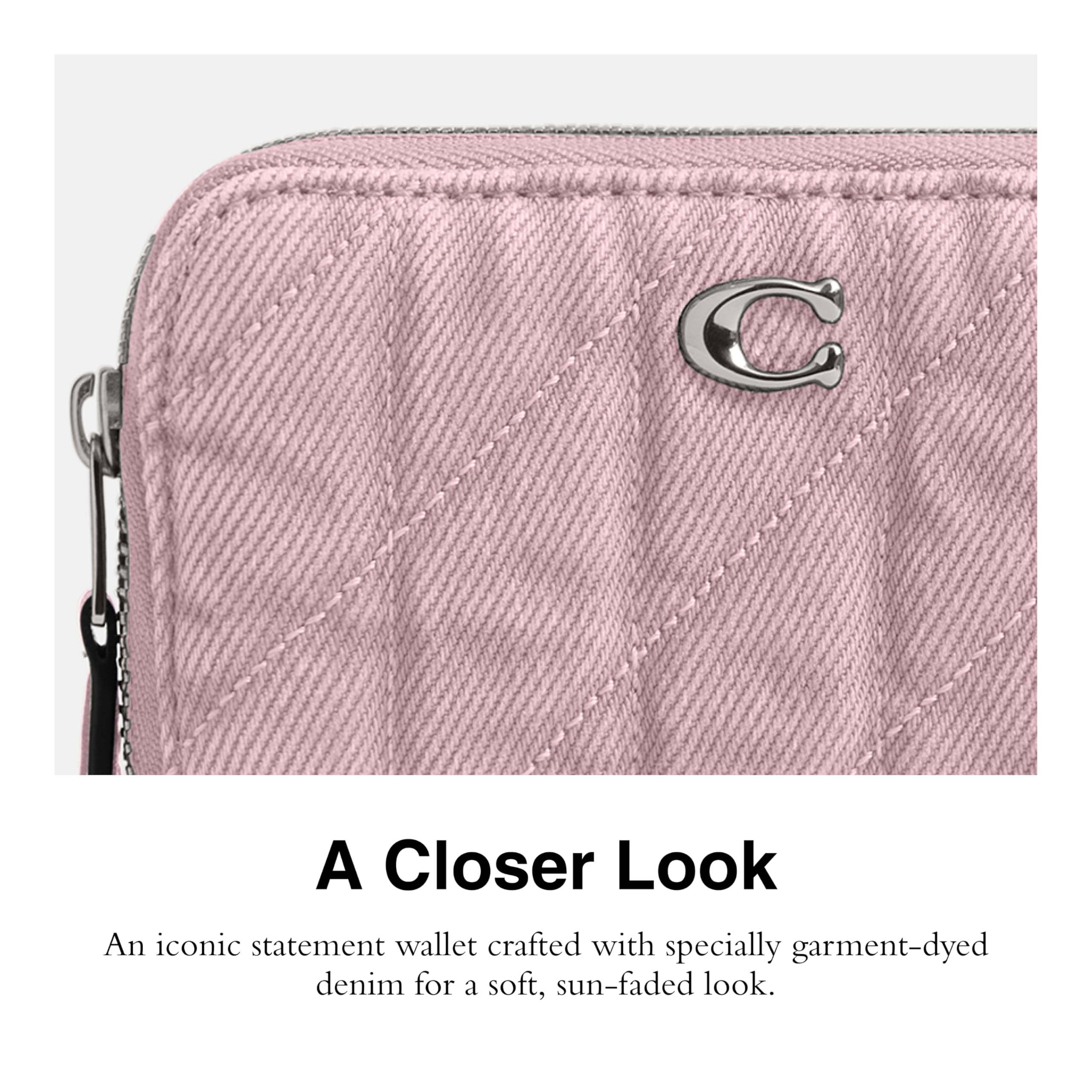 Editor's Notes: The accordion gusseted design of this denim card case wallet secures with a zip-around closure