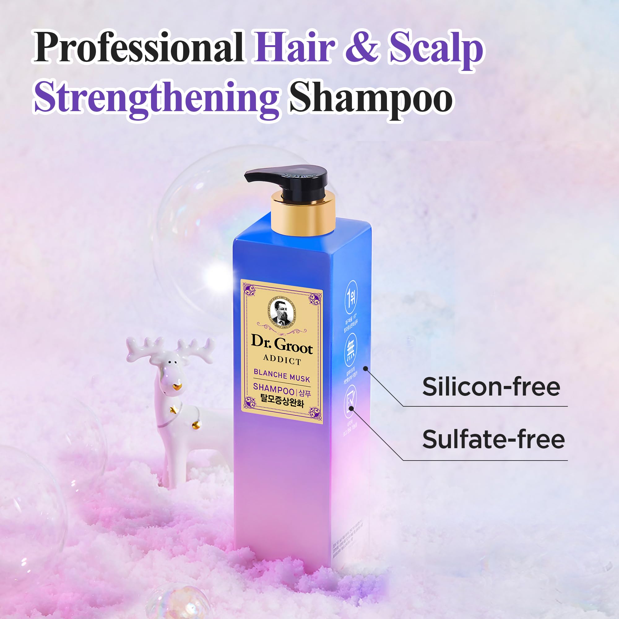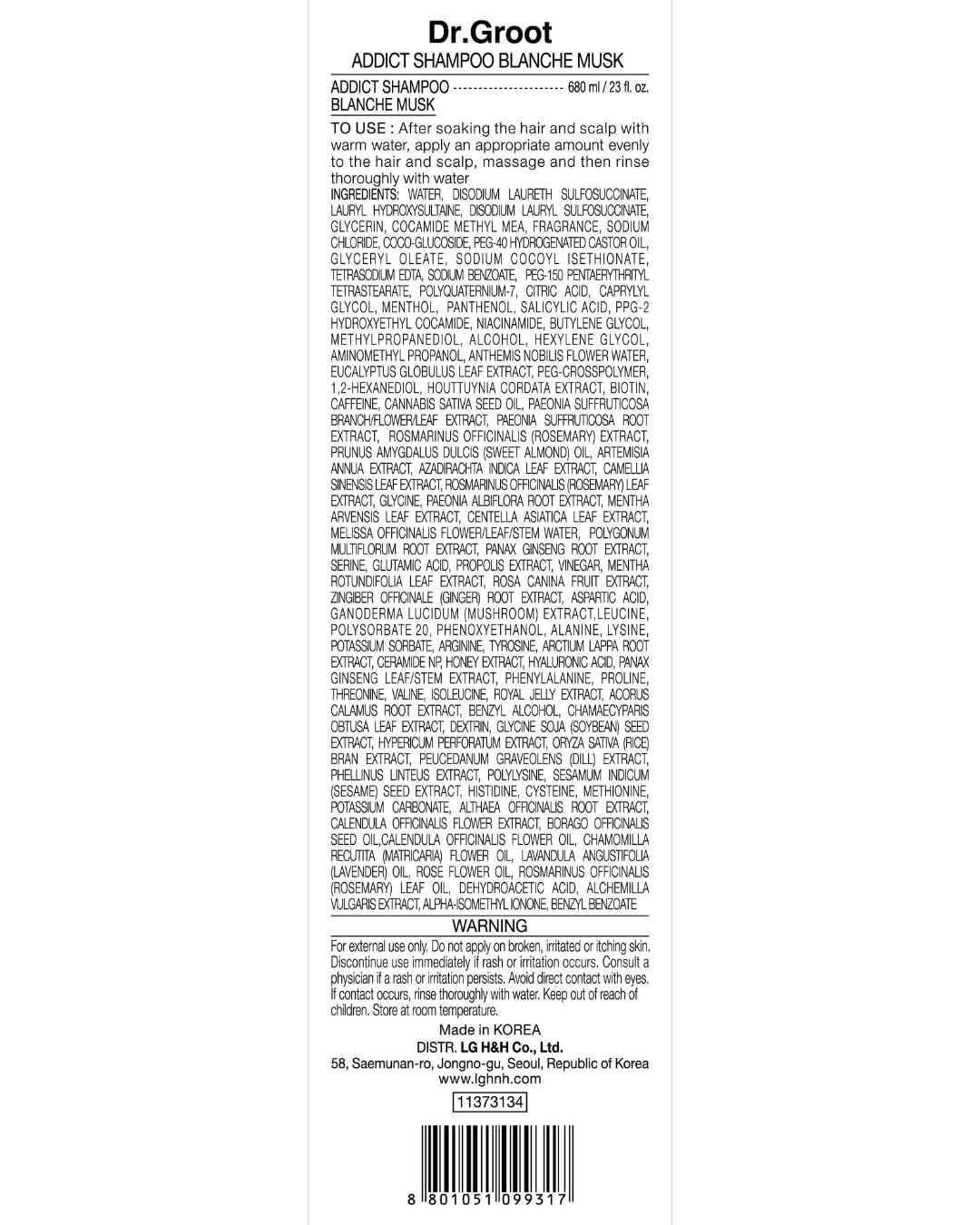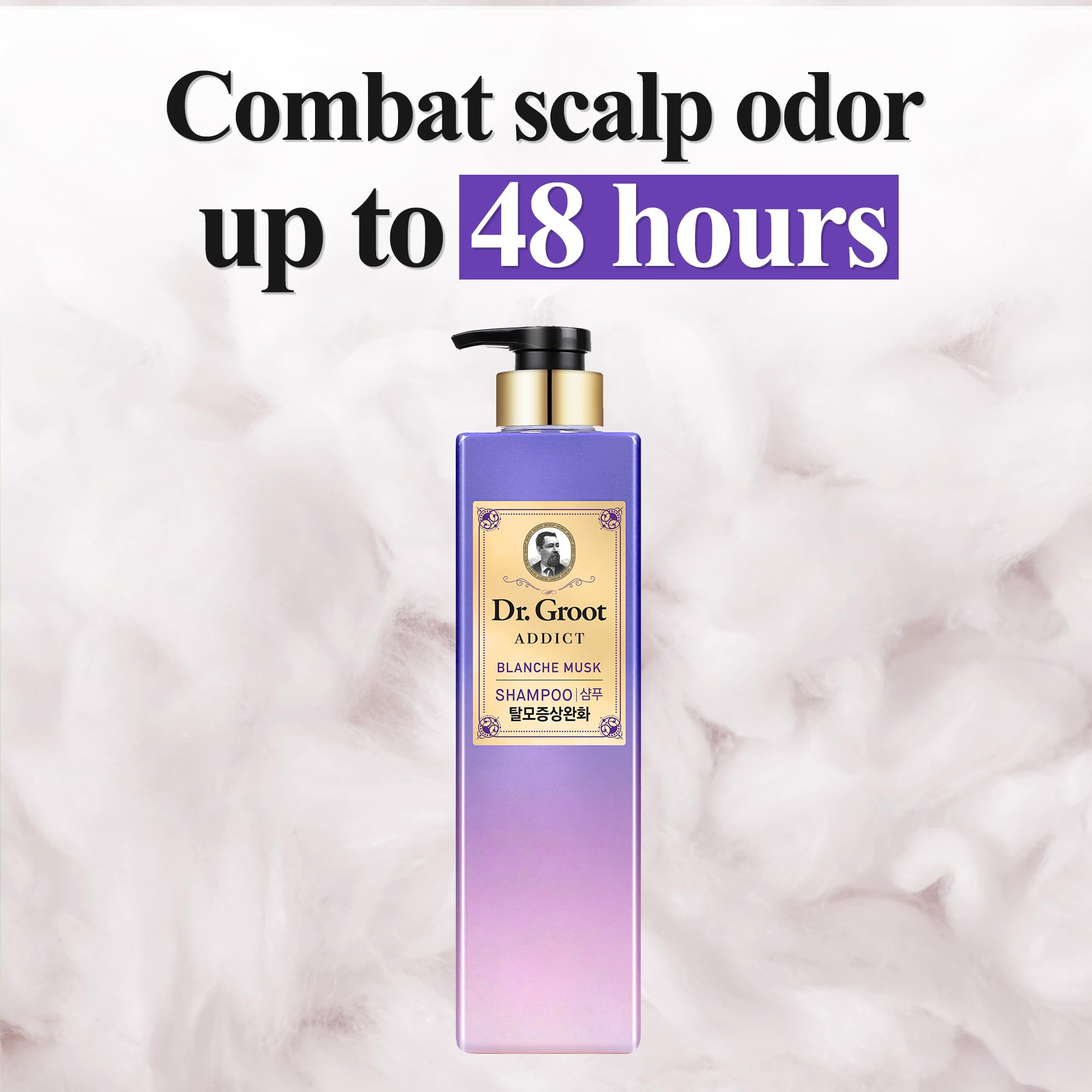 DR. GROOT ADDICT SHAMPOO (680ml/23fl oz) - Experience a transformation with our shampoo. Packed with 10,000ppm of amino acids, it nourishes your hair, leaving it remarkably smooth in just 5 seconds. Dr. Groot Addict Shampoo offers addictive, long-lasting fragrances to keep your hair smelling fresh for up to 48 hours, boosting your confidence while combating unpleasant odors.