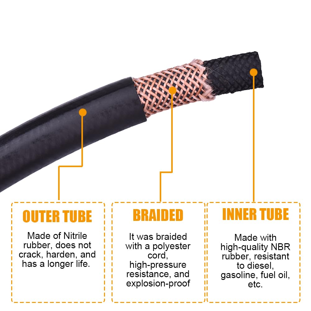⭐WIDE APPLICATION ◀ The 5/8 fuel line is specially designed to meet SAE 30R9 standard and can be compatible with any fuel (including methanol and nitromethane), oil,E85, E10, coolant, brake, transmission, clutch, diesel, hydraulic fluid, pump gas, and nitrous oxide.