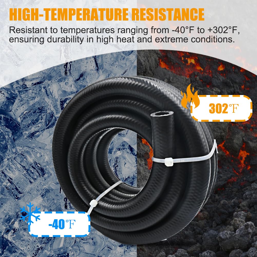 ⭐QUALITY TESTED ◀The 16mm fuel line is double annealed making it easy for bending and flaring. You can cut the 5/8 oil hose according to actual needs to better meet your needs. Oil resistant, temperature-resistant, and ethanol tolerance. The 5/8 high pressure fuel line can hold up to -40°F to +302°F, a lot stronger to heat and extreme circumstances.