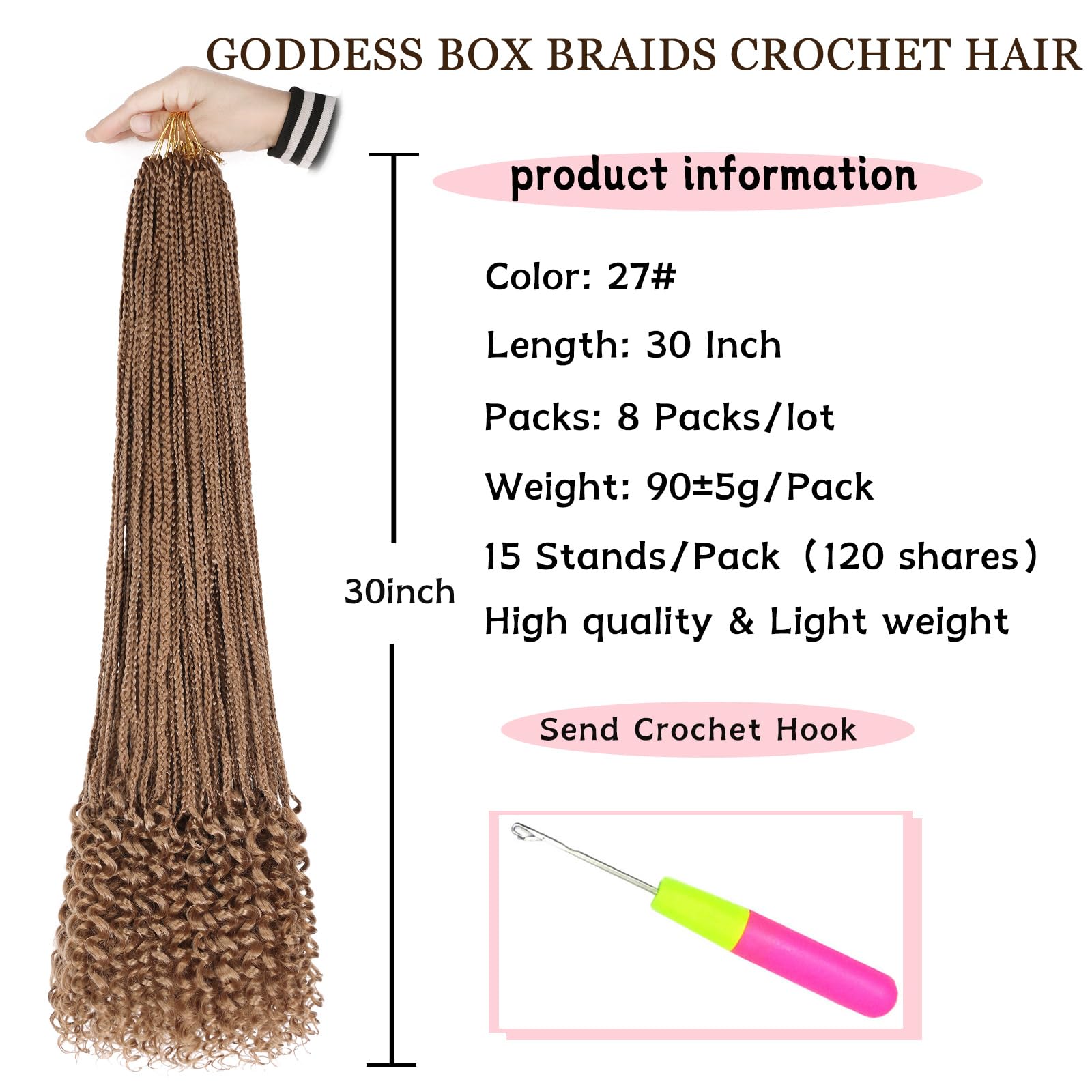 Hair Features: Goddess box braids crochet hair is 100% handmade, with pre-looped design, easy to install, especially for beginners, it can save more time to make hairstyles.