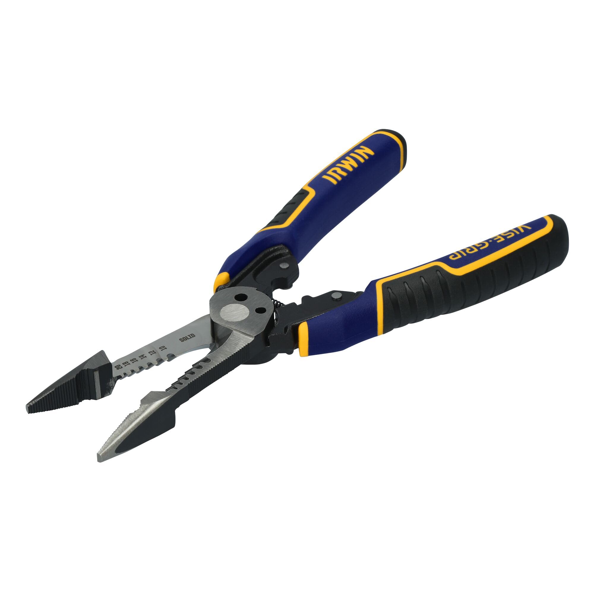The IRWIN VISE-GRIP 7-in-1 Multi-Function Wire Stripper provides multiple functions for tool consolidation while on the job. This forged steel tool has a rounded style nose, which is ideal for wire twisting and loop making. It also has 3-shot bi-material grips for comfort and control, and are spring-loaded to help reduce hand fatigue with repetitive cuts. The storage locking mechanism helps eliminate any issue with storing in tool belts or toolboxes.