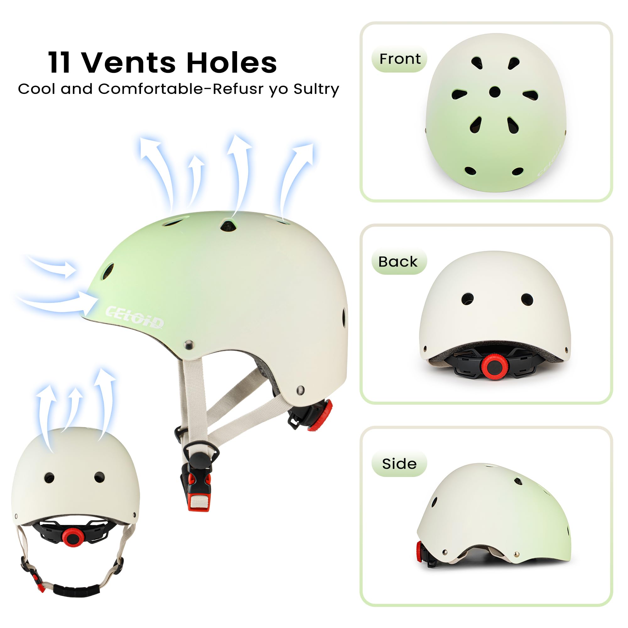 【WIDE APPLICATION】: The kids helmets are designed for kids sports saftey protection especially for any outdoor activities for many outdoor sports such as skating, skateboard, riding bikes, scooters roller, blading cycling, biking, snowboarding, balance bike ice and roller cycling skating, rolling, ATV, BMX and other extrem sports. Our goal is keep our kids away from hurt when they enjoy the joy of sports.