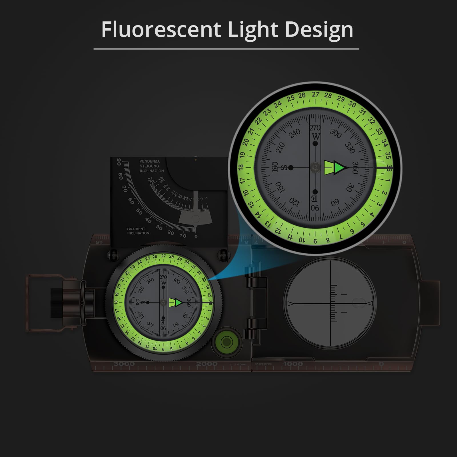NAVIGATION COMPASS WITH FLUORESCENT: Luminous magnet arrow and compass card allows you to read data in dark environment after absorbing enough sunshine. The luminous effect is really convenient to use at night