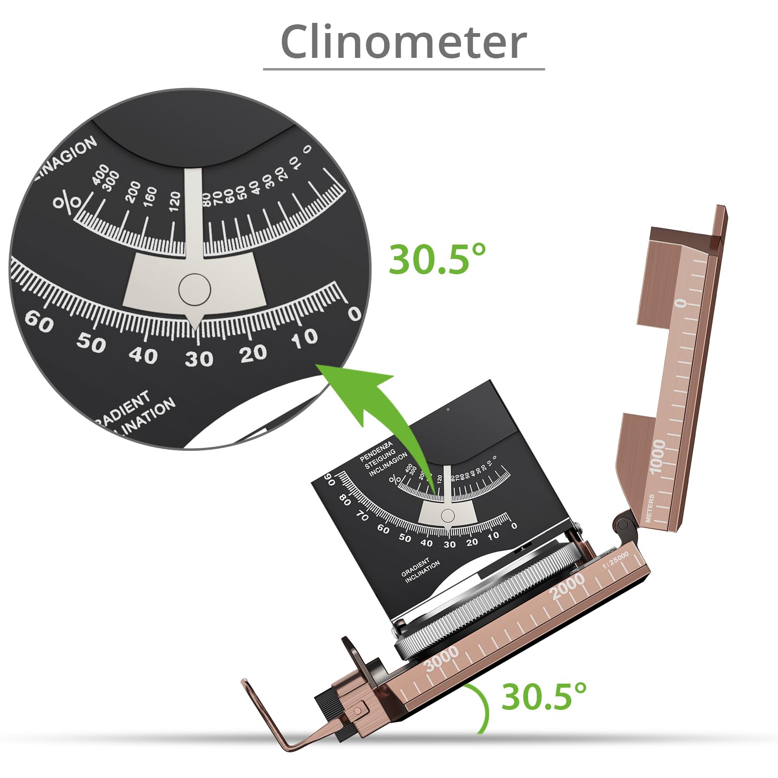 INCLINOMETER COMPASS: This is also a clinometer, enable to measure height and slopes