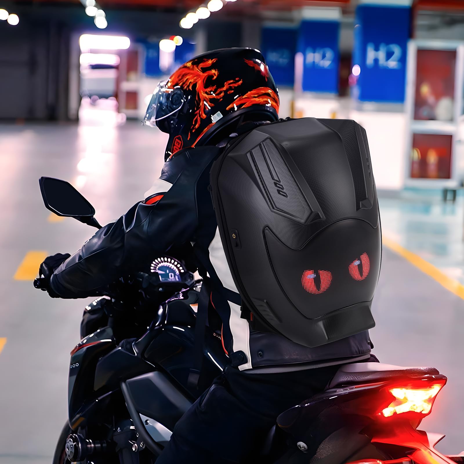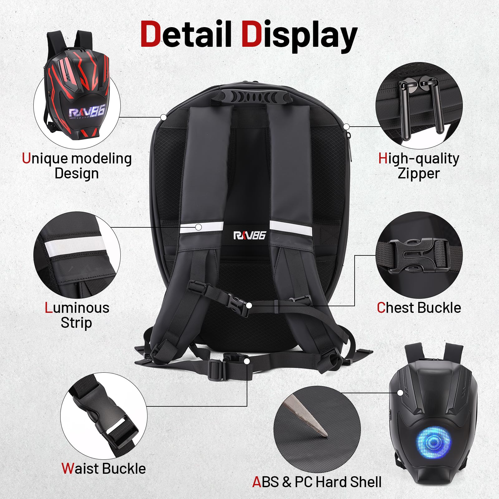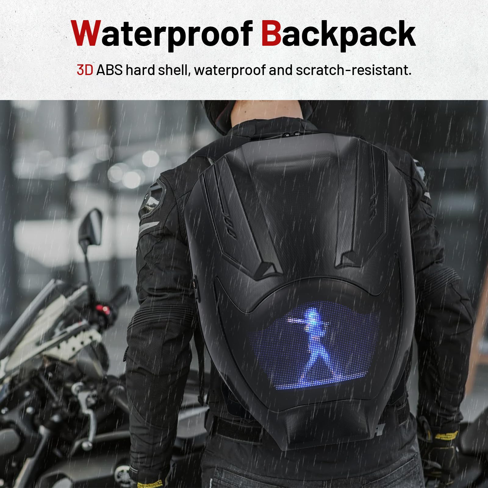 Vehicle-machine Interconnection Module: RKV86 led motorcycle backpack supports vehicle-machine interconnection. After installation and setting according to the tutorial video,the vehicle's steering and braking can be synchronized on the backpack's display screen with specific animations. It amplifies the visual perception and makes your riding safer.