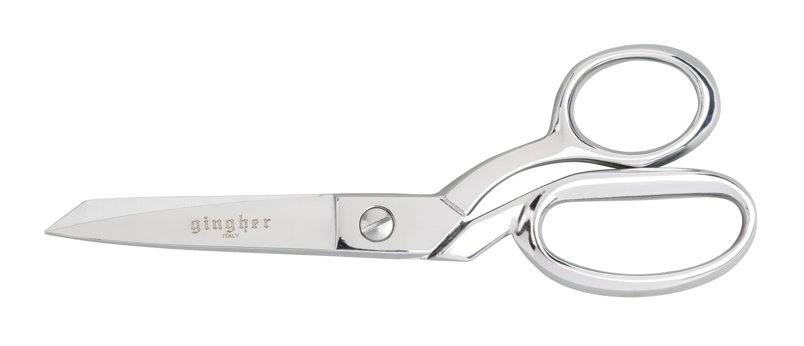 Gingher Knife-edge Dressmaker Shears are meticulously crafted of premium, forged steel with long, precision-ground blades that cut multiple layers of fabric easily, all the way to the tip. The longer cut length makes them the ideal craft scissors for cutting patterns, trimming seams, or cutting long swaths of fabric. The double-plated chrome-over-nickel blade finish is both striking and durable. A bent handle design helps hold fabric flat on your work surface for smooth, comfortable, mistake-free cutting. These Gingher scissors also include a protective nylon sheath for storage among your other quilting supplies when not in use.