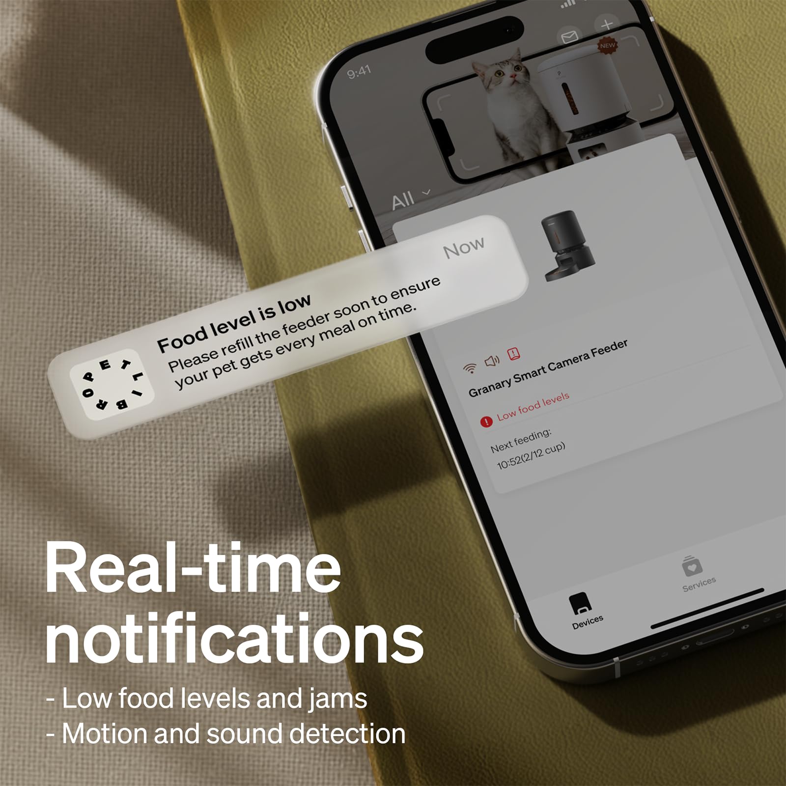 Smart APP Control for Flexible Feeding Plans: Easily schedule up to 10 meals per day with adjustable portions (1–50 per meal) via the PETLIBRO App. This dog feeder support for both 5GHz and 2.4GHz WiFi ensures stable connection, while multiple family members can control and check feeding history anytime. Receive instant App alerts when food runs low—ensuring every meal stays on schedule.