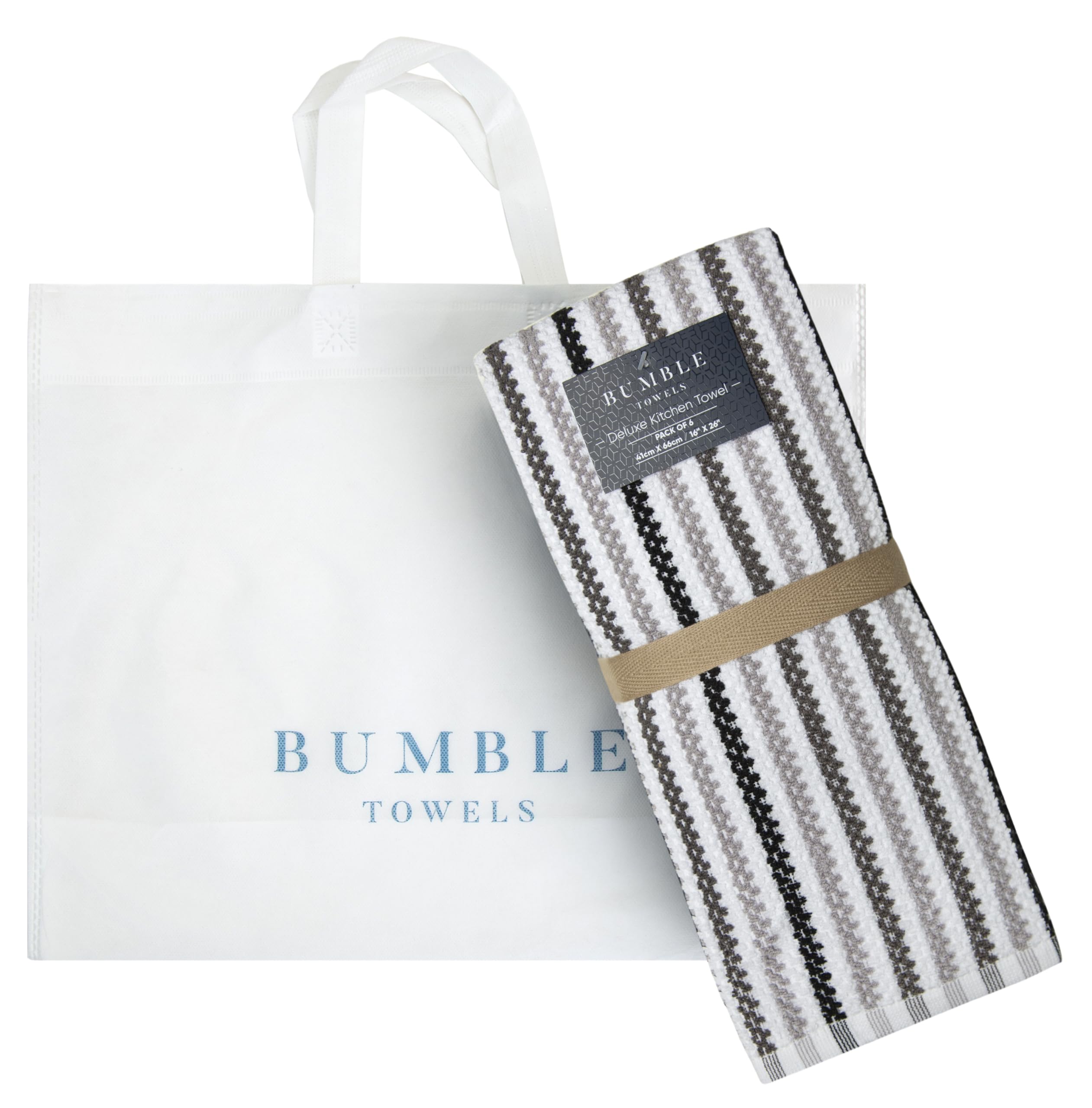 HANGING LOOP & BONUS TOTE BAG INCLUDED: Your new kitchen hand towels by Bumble will arrive at your door wrapped in our signature elegant tote bag which makes a great gift for your loved ones. Take your carry bag with you to the pool, beach, and even the gym.