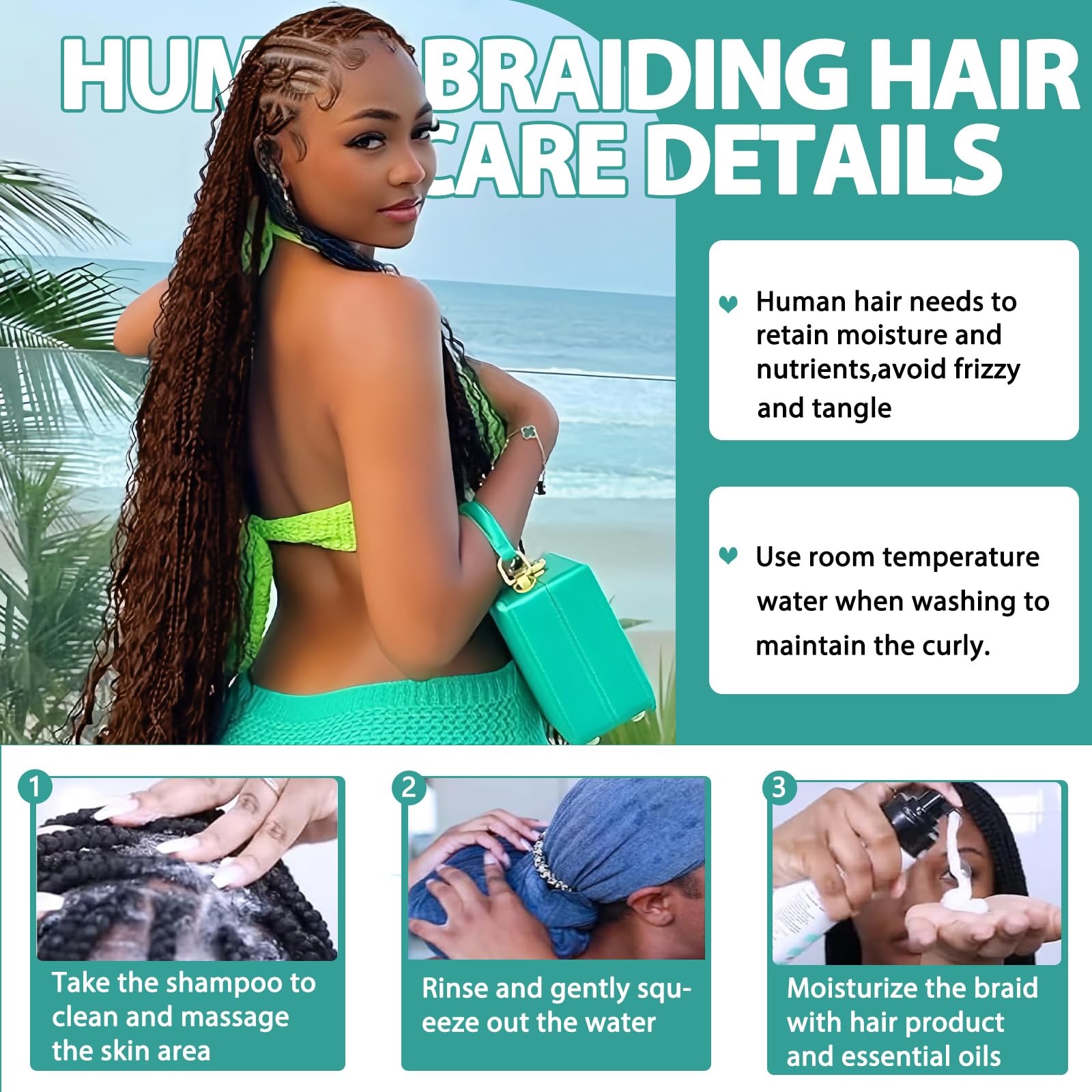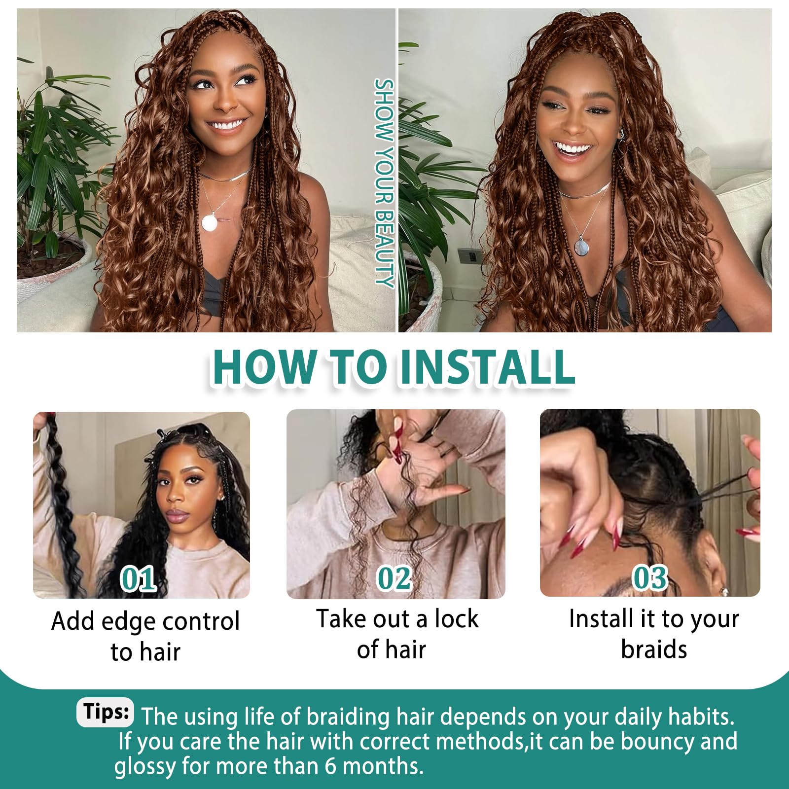Super Durable: Designed for extended wear, use cool water with mild shampoo and conditioner to care braids, you will can carefree enjoy the perfect braids with our human hair boho braiding hair, ensures you can confidently wear these boho hair without worrying about premature damage or shedding.