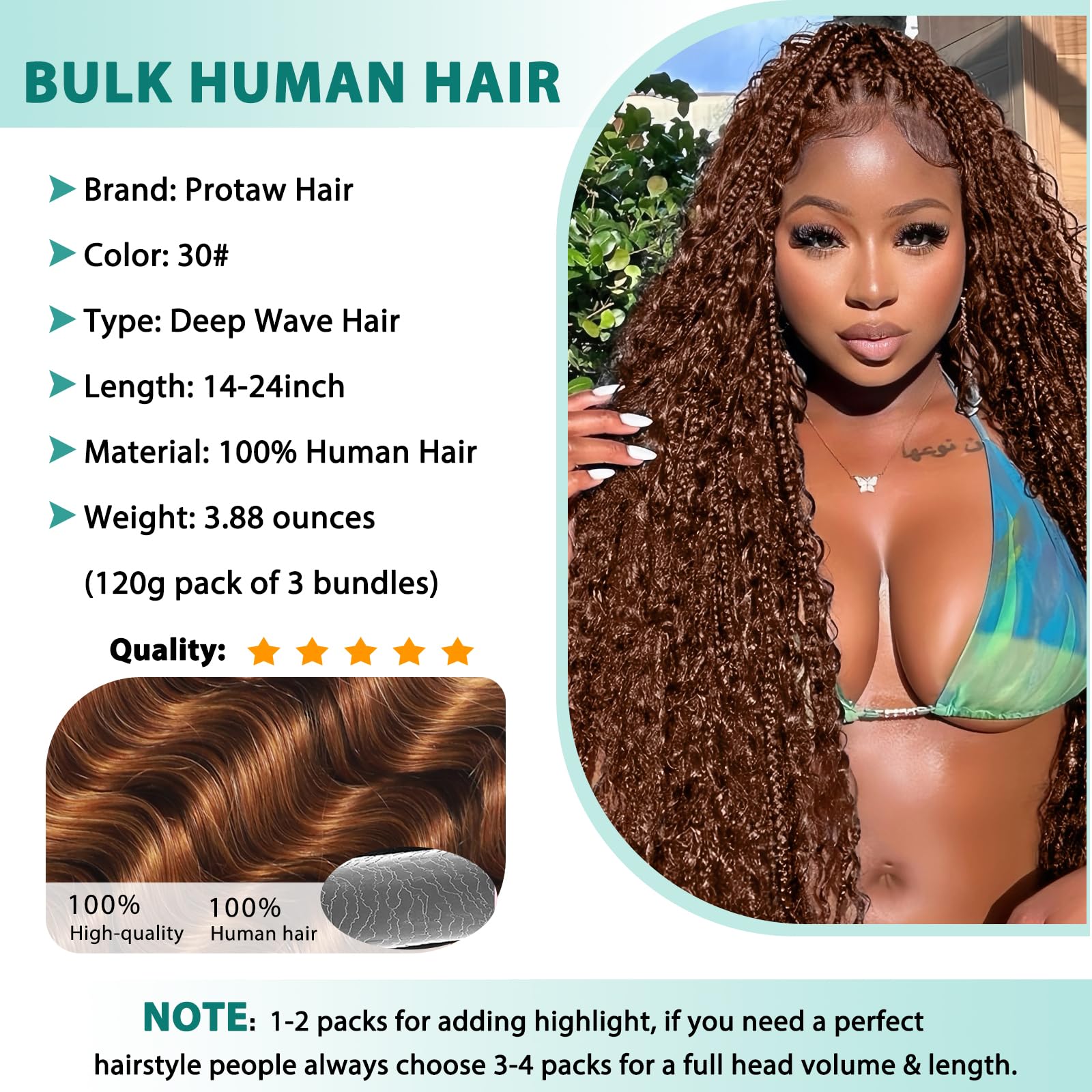 Hair Length & Weight: The length of boho braids human hair is 14 inch- 30 inch, these bundles are true to length with full ends. 120g 3 bundles /pack, ideal for braiding layered, dimensional styles. 3 bundles are more easy use than 2 bundles, suitable for braiding beginners. If you like full head braids, purchase 2-3 packs for medium density or 4+ packs for extra thickness.