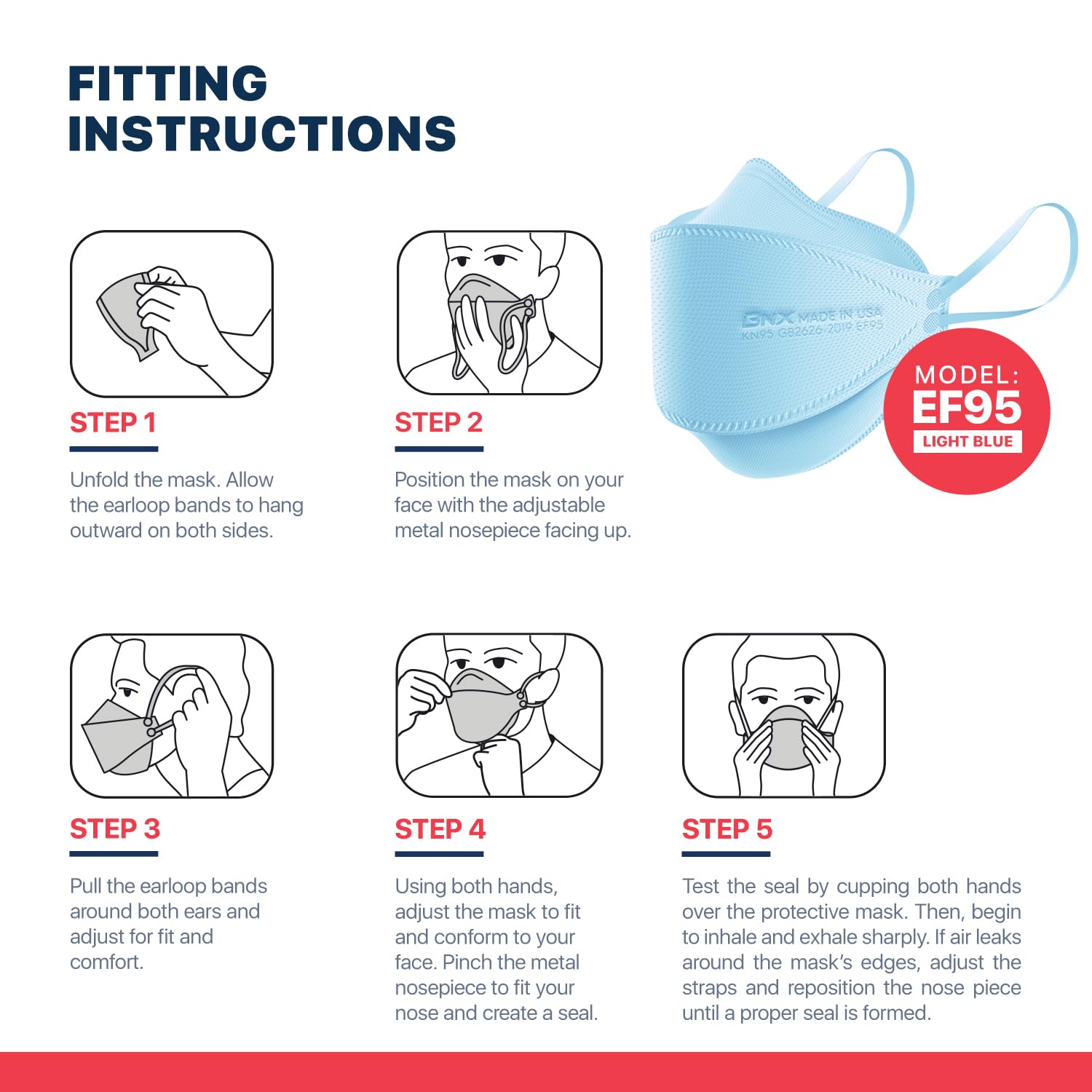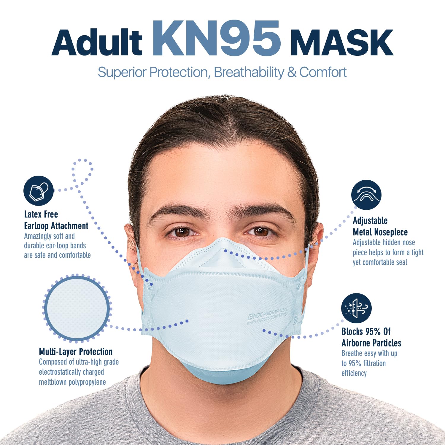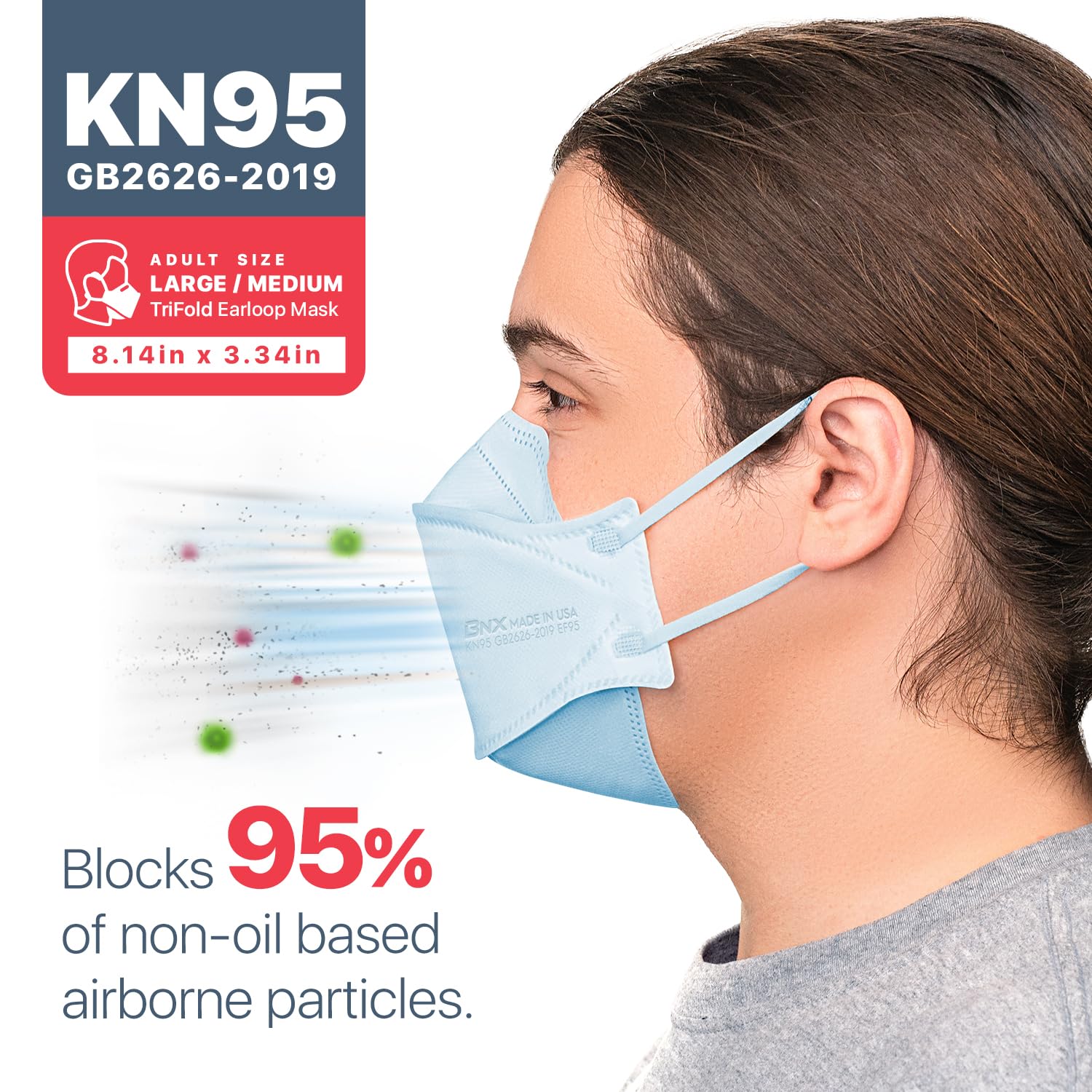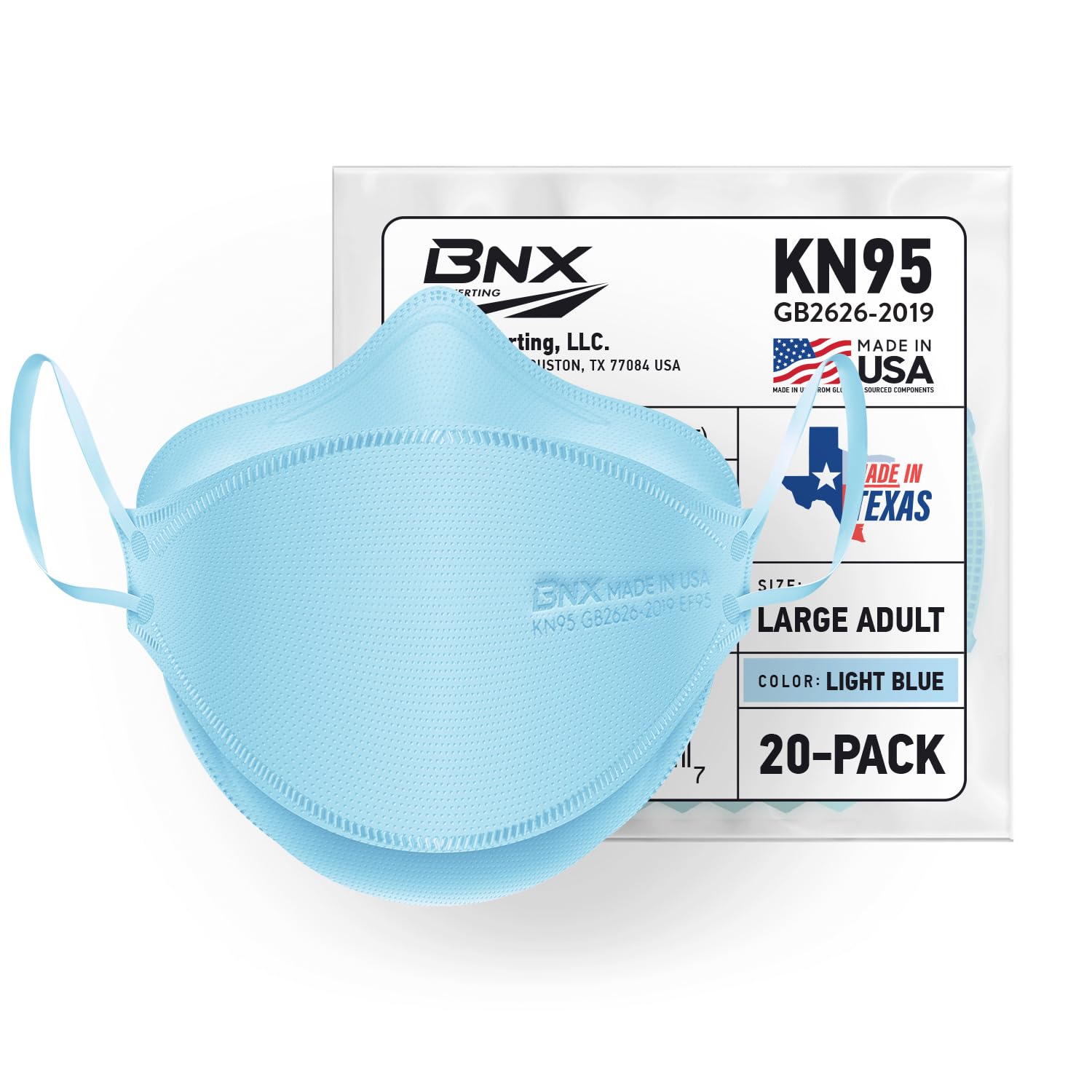 [BNX Quality Promise & Applications] BNX is committed to delivering the highest quality American made safety products using the latest automated manufacturing processes and technology and the strictest quality standards. Our KN95 face masks are ideal for use in crowded or contaminated areas such as: Commercial Buildings, Construction, Food Processing, Food Safety, Retail, General Manufacturing, Infrastructure, Mining, Oil & Gas, Transportation, and more.