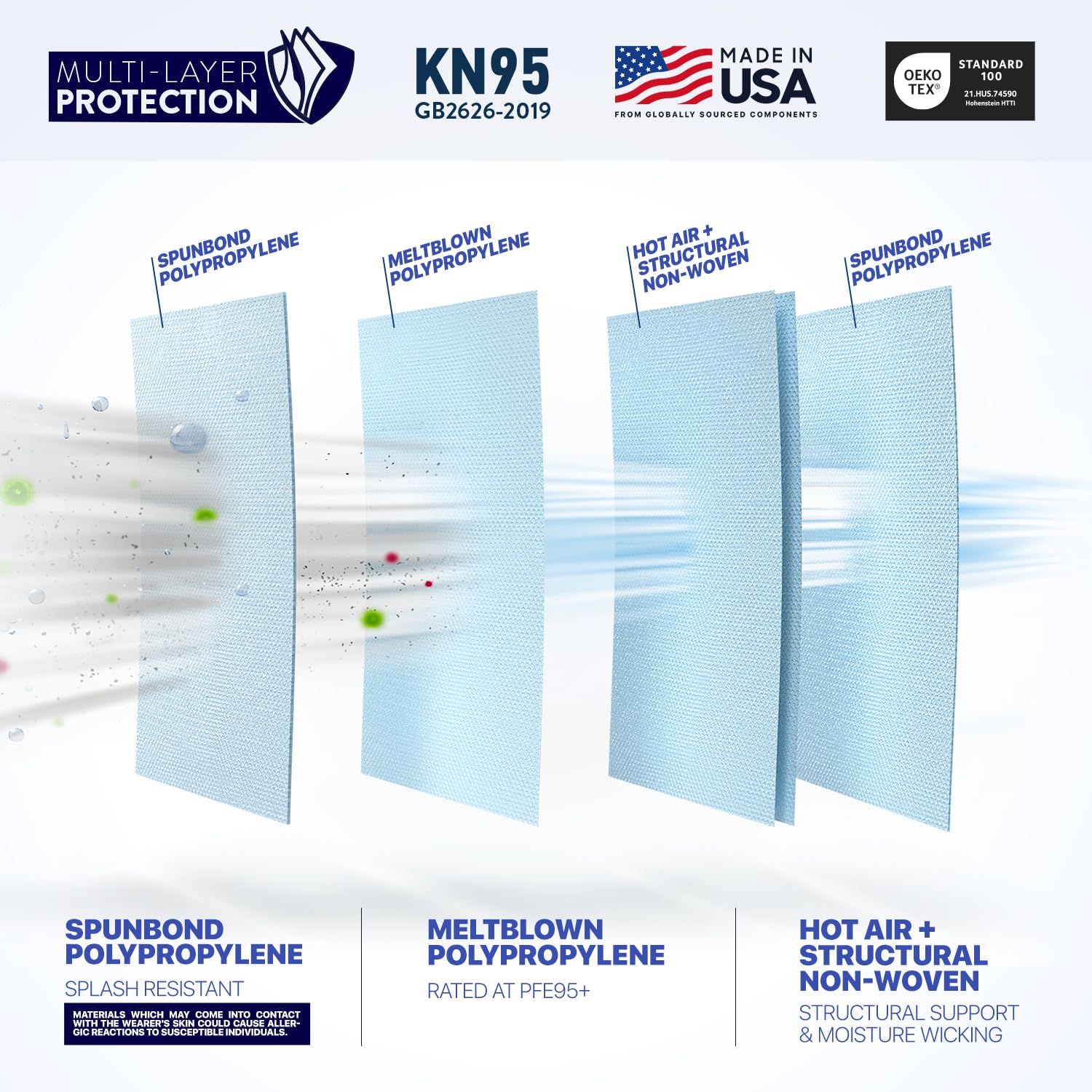[Superior Protection & Breathability] BNX’s filtration technology provides maximum protection, comfort and breathability. The active filter layer is composed of ultra-high grade electrostatically charged meltblown polypropylene (top shelf highest grade material available in terms of breathability and protection). Extremely breathable up to 50%+ more breathable than leading competitors.