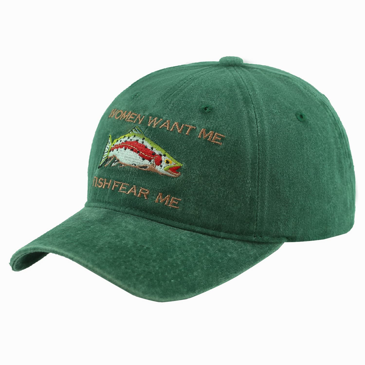 EMBROIDERED DESIGN: With EMBROIDERED Women Want Me, Fish Fear Me pattern on front, this dad cap is made for great smooth texture and long lasting durability, soft, comfortable, durable and lightweight.