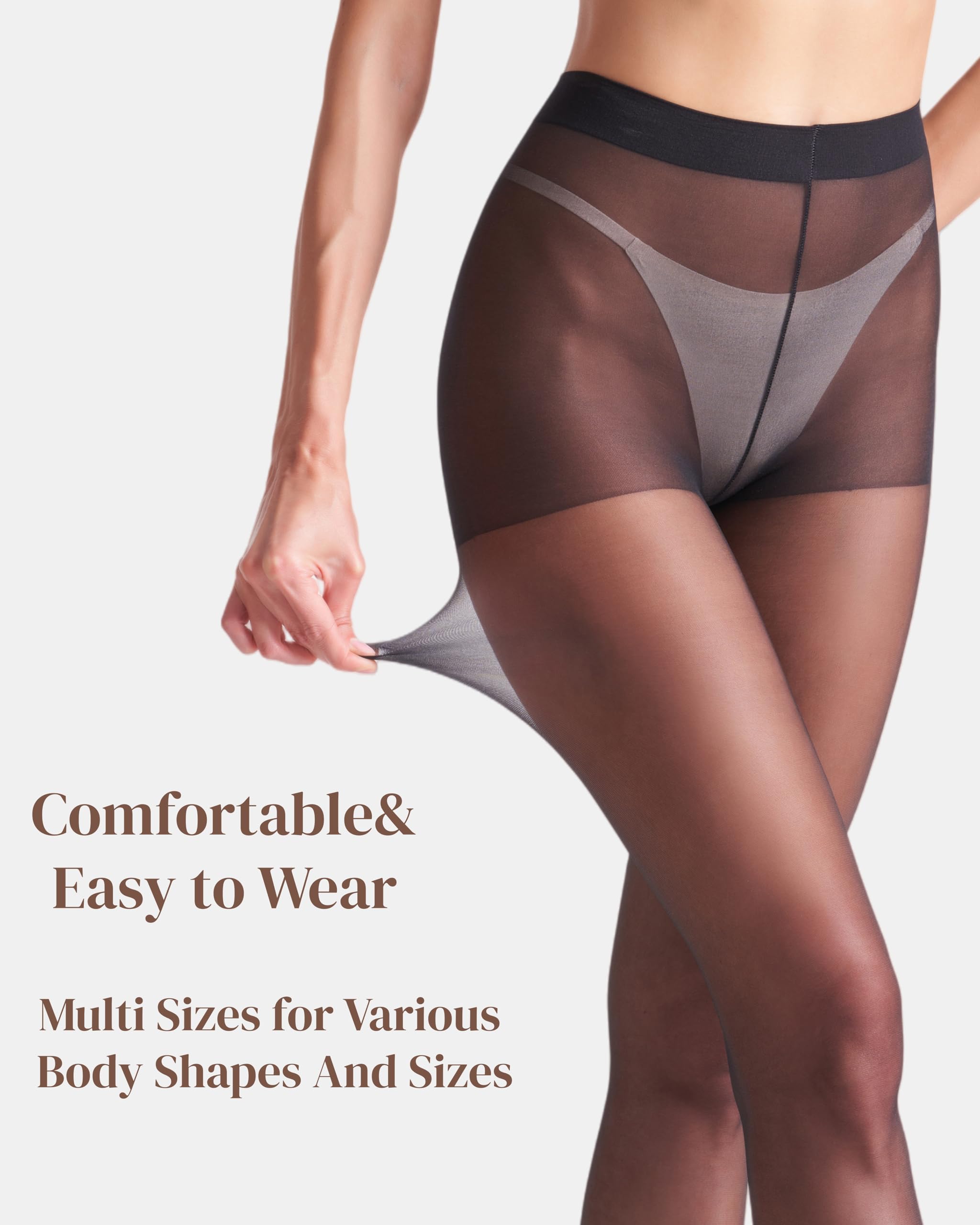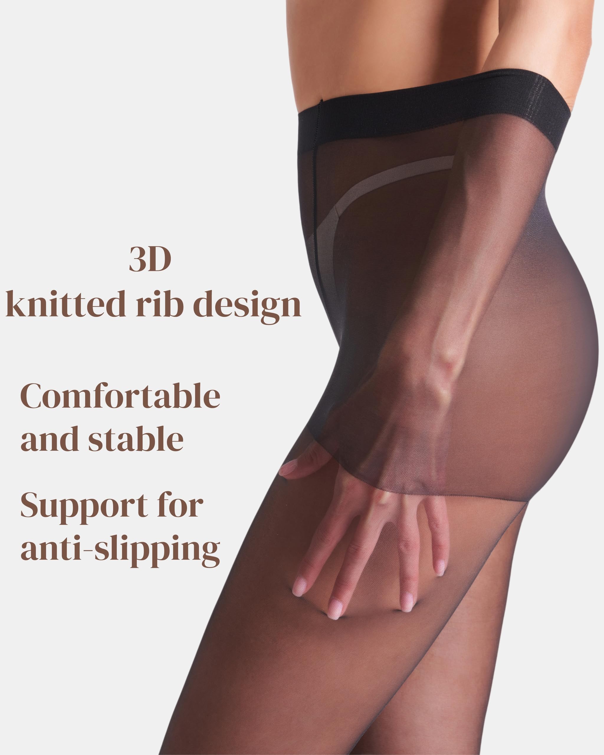 CONTROL TOP: 20D high-density knitting applies just the right amount of pressure, gently tucking in excess belly fat, lifting the lines of the buttocks, and creating a natural and beautiful S-shaped curve. Maintain an elegant posture in daily wear or when paired with skirts.