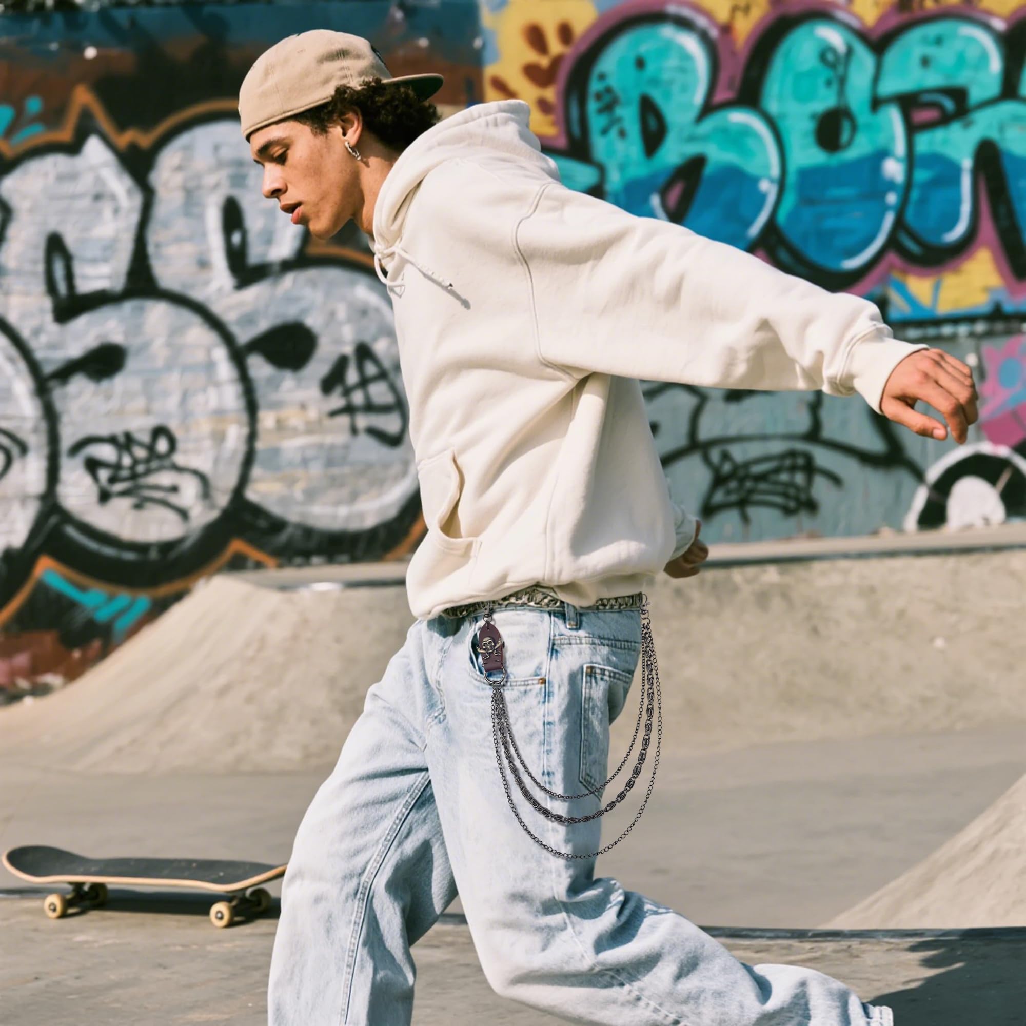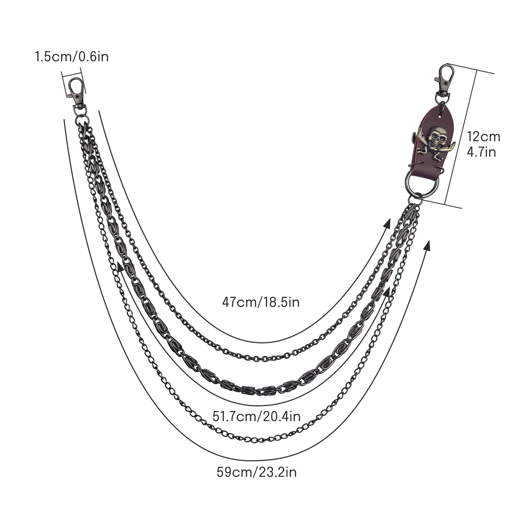 Heavy Duty Punk Accessories - Crafted from high-quality alloy materials, this pants chain boasts exceptional toughness and durability. It's built to last, remaining sturdy even with daily use. The alloy is resistant to fading, rust, and breakage, ensuring that your jean chain fashion statement stays intact for a long time.