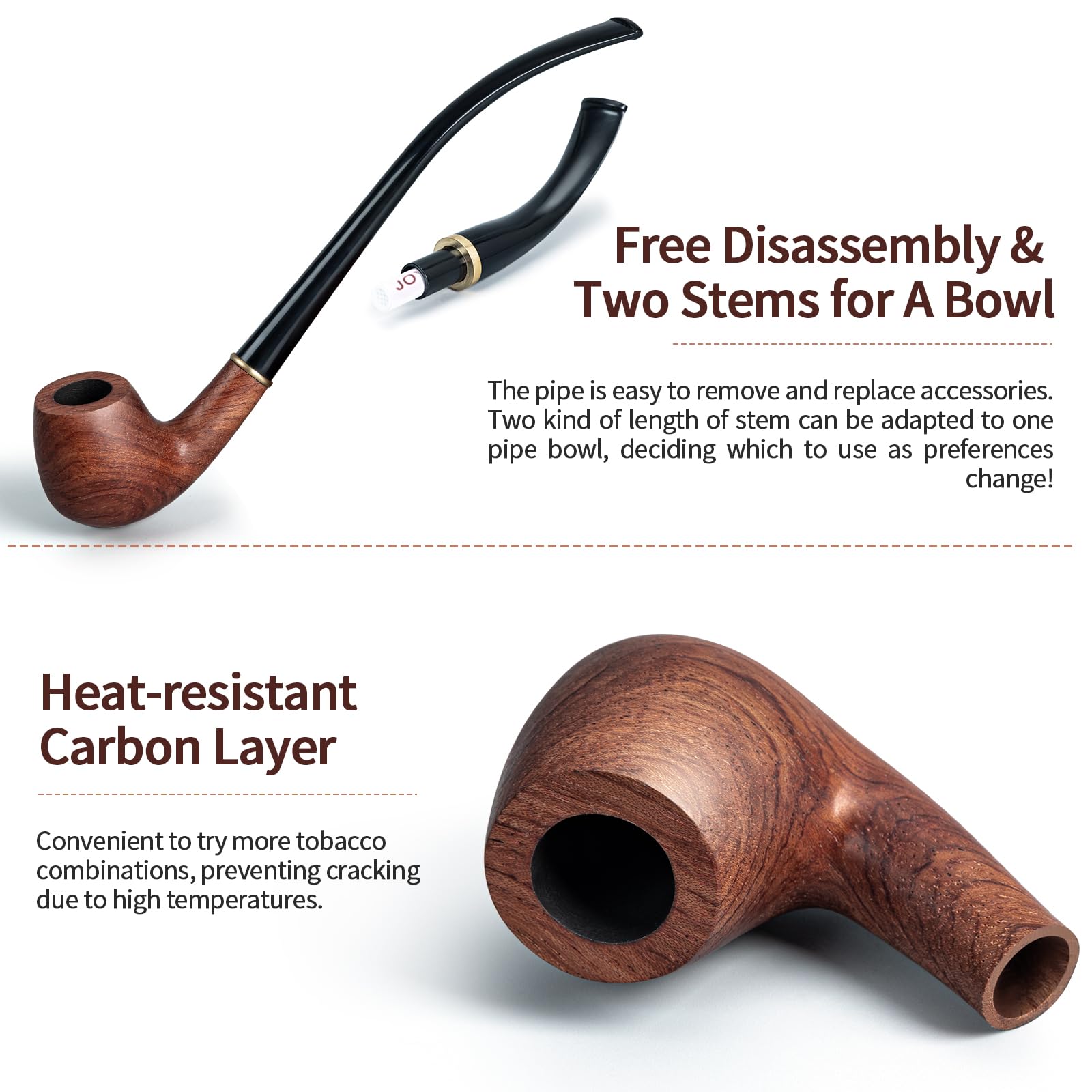 [Customizable Smoking Experience] Designed with interchangeable long and short stems, this pipe adapts to your needs. The long churchwarden-style stem delivers a smoother and cooler usage, while the compact short stem is ideal for travel and convenience. Whether relaxing at home or smoking on the go, this pipe accommodates every occasion.