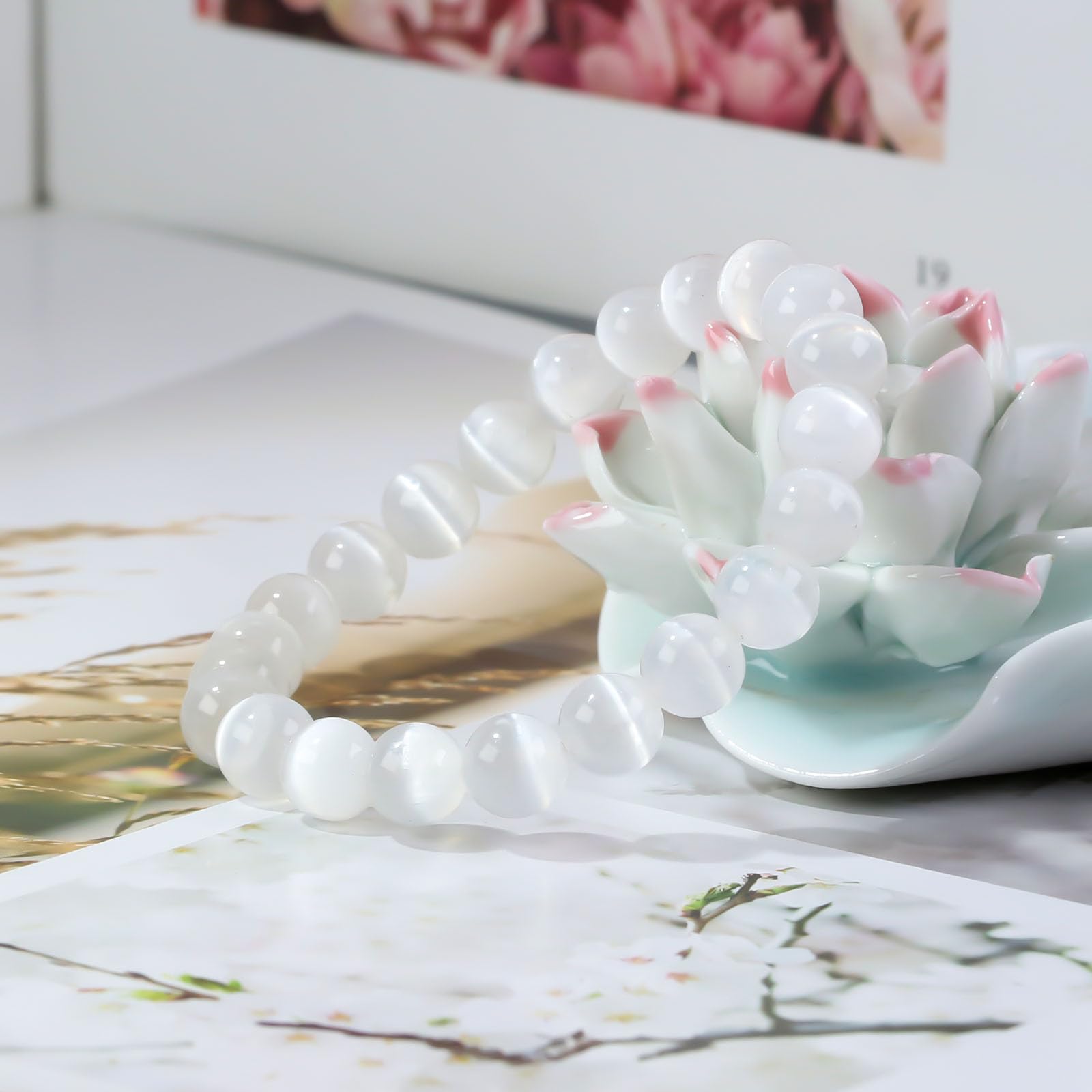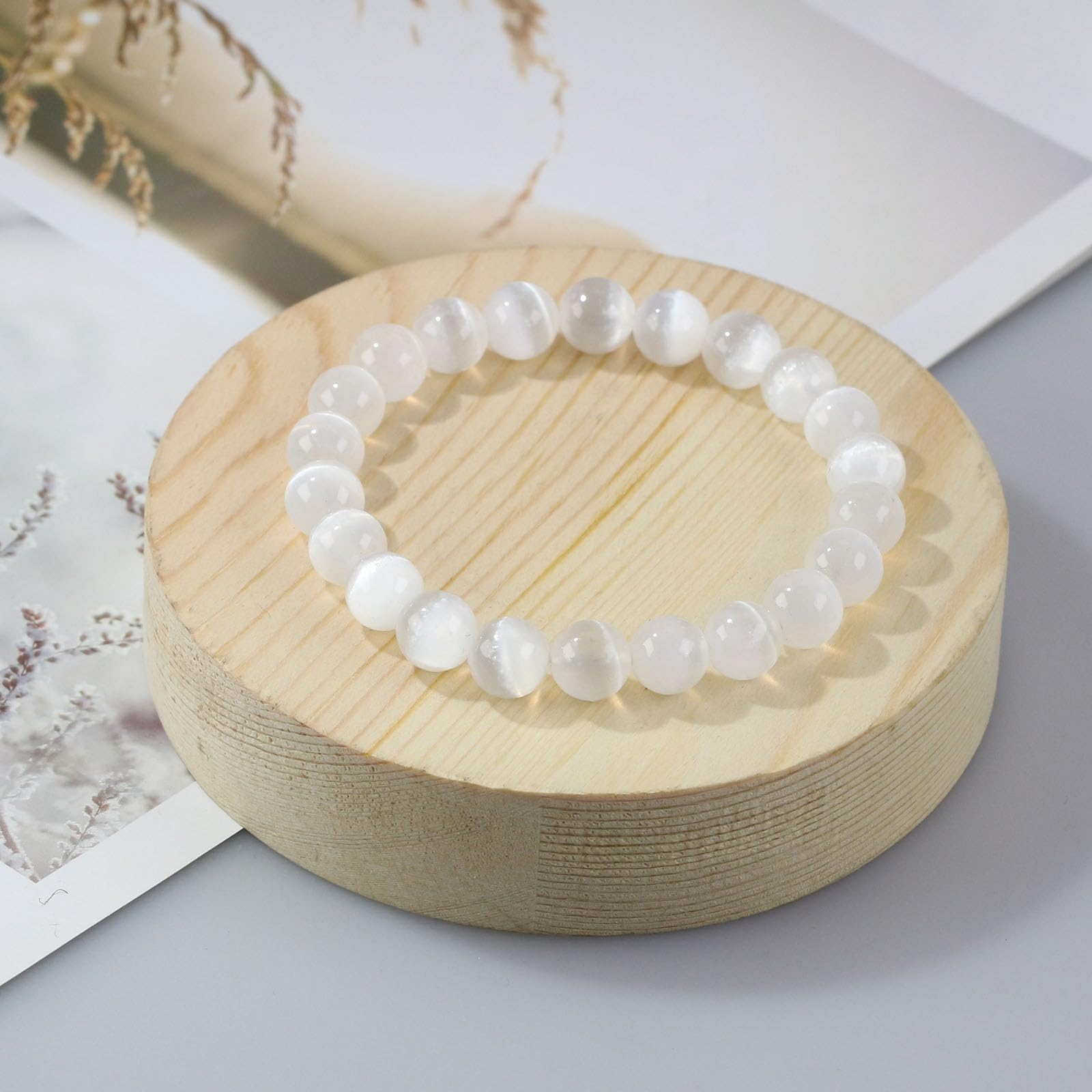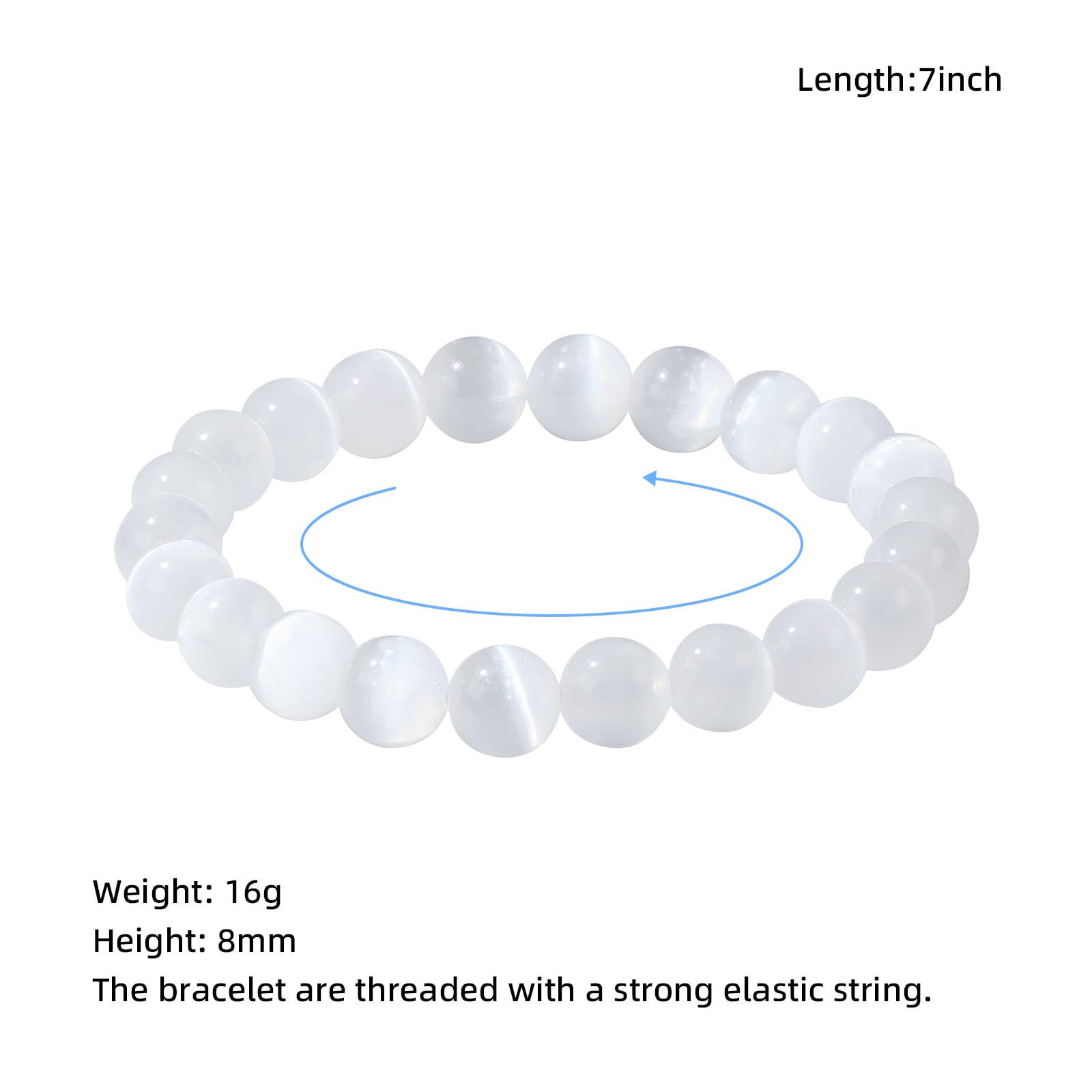 Made with hand selected 8mm round high quality beads and the finest quality stretch bracelet string, doubled for extra security. Knot hidden inside beads for clean appearance.