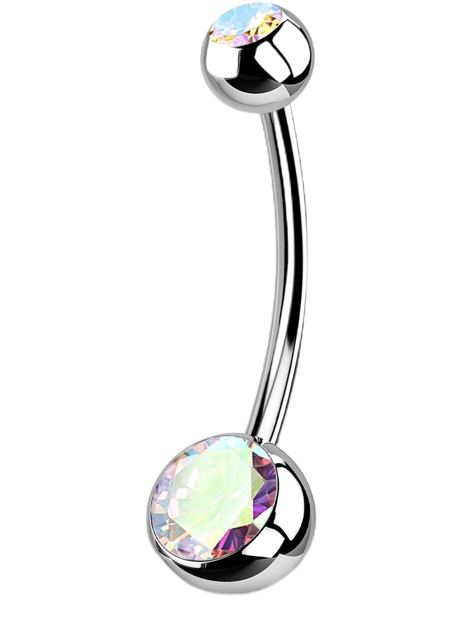 【Brilliant AB CZ Shine — The iridescent AB cubic zirconia flashes multiple colors under light, offering a bright, eye-catching glow ideal for stylish belly rings for women, gifting, or standout daily wear.**