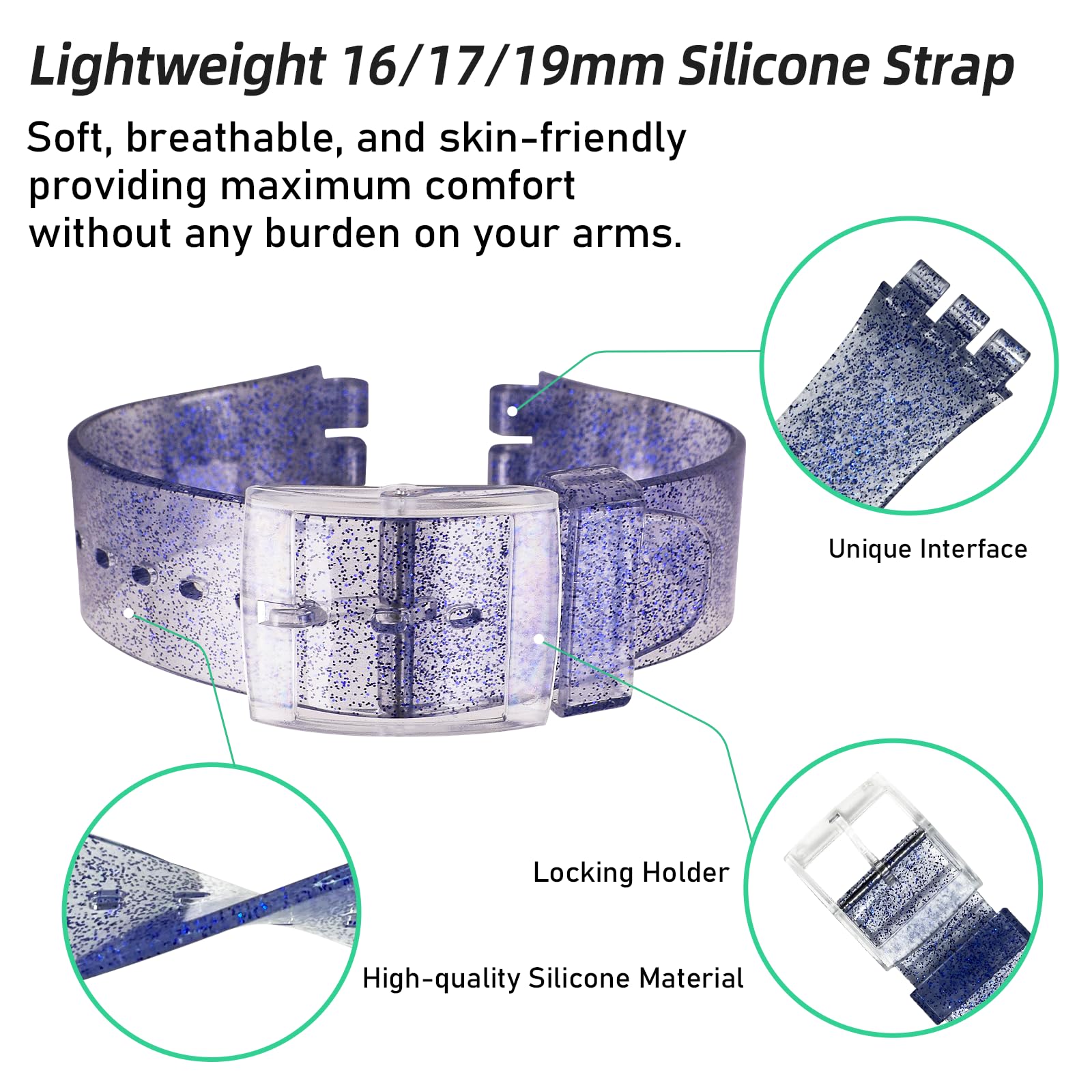 - Perfect fit for 16mm Skin Series Swatch Watch. Fit replacement plastic swatch bands - choose from original, fresh, retro, hip and creative styles.
