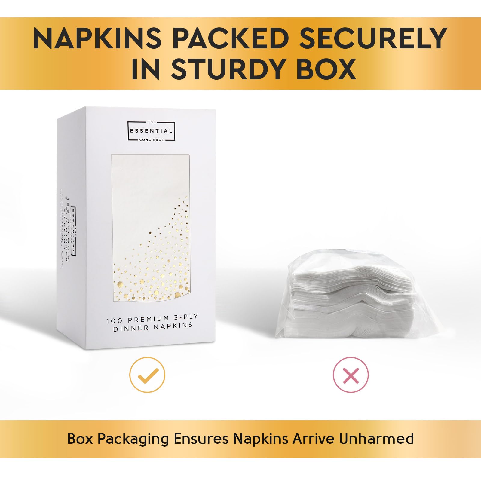 You Won't Have to Limit Your Guest List! - With a large 100 set of gold and white dinner napkins, your guests will always have a white paper napkins to hand. Enjoy the convenience of disposable napkins and reduce the clean-up time after your party