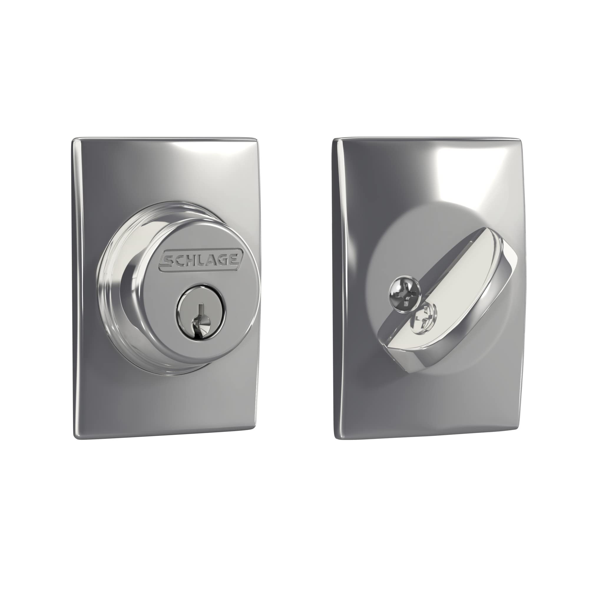 The SCHLAGE Single Cylinder Deadbolt with Century Trim in Bright Chrome is perfect for use on exterior doors and adds an extra layer of security to your exterior handleset or knob/lever. The Century Trim is chic with a delicate, slightly curved shape. When finished in mirror-like Bright Chrome, the deadbolt adds a touch of drama. Plus, it’s been designed and tested with strength and durability in mind.
