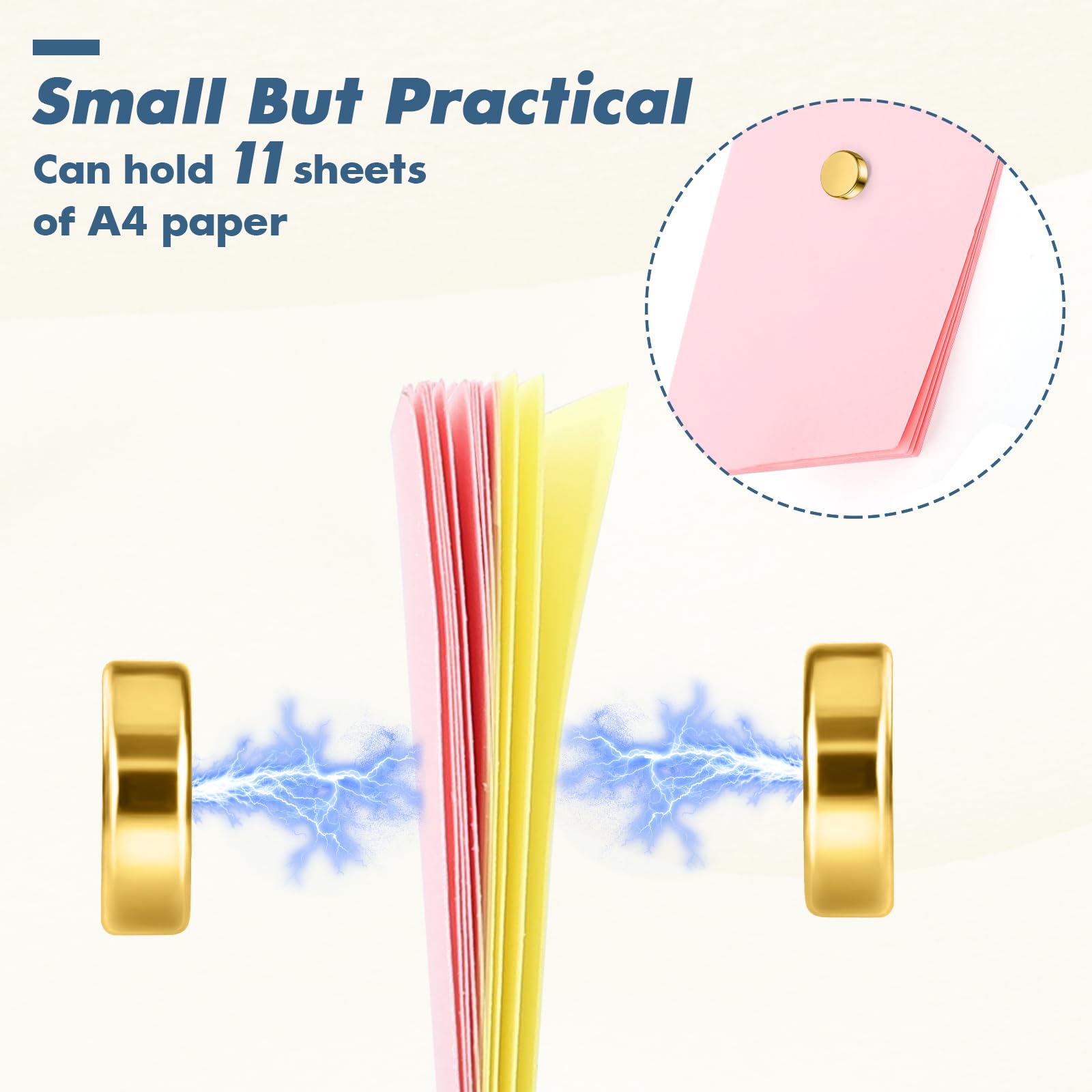 【Useful Design】Despite its small size(Diameter: 6 mm, thickness: 2 mm), each magnet can hold up to 11 A4 sheets of paper, so you don't have to worry about your items slipping off easily.