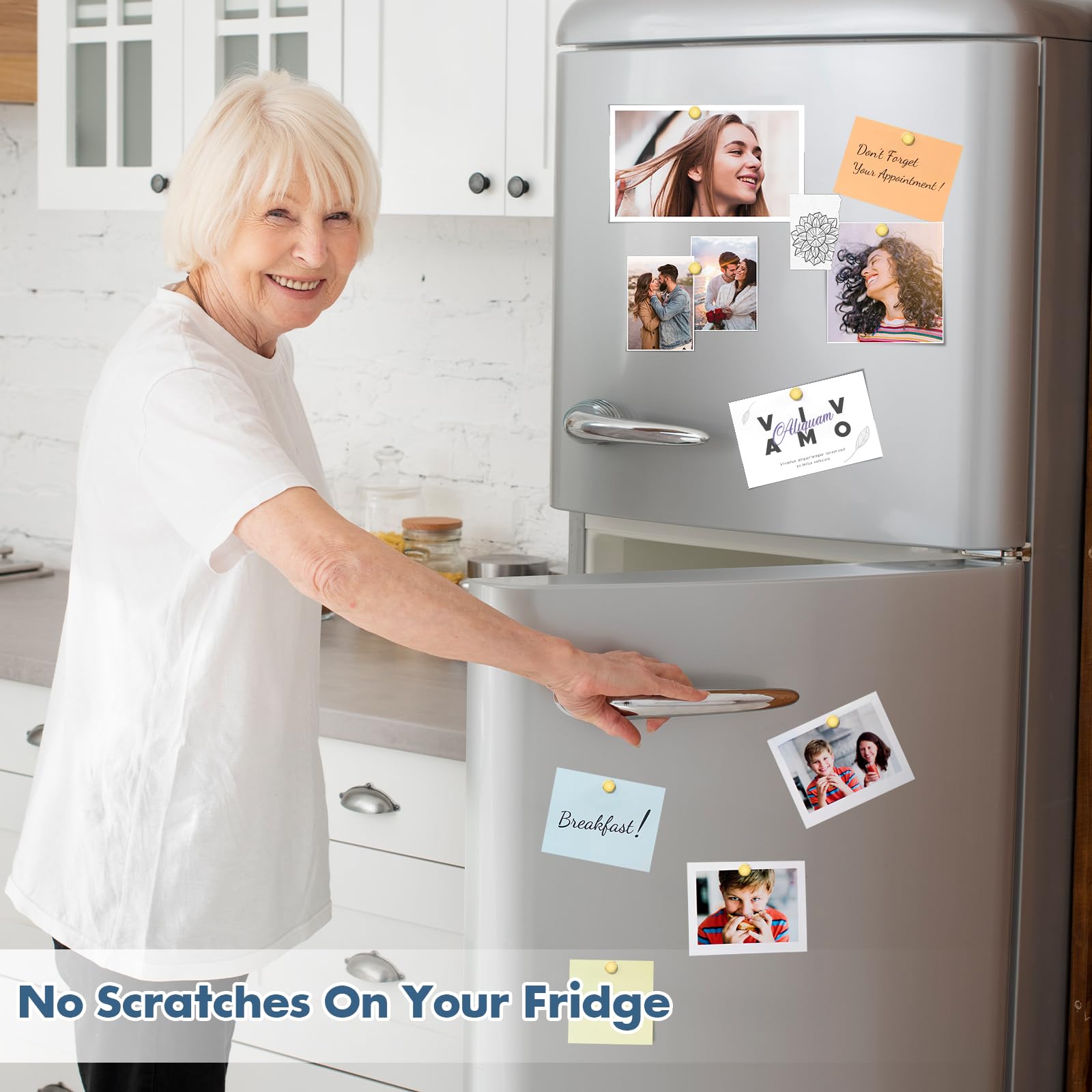 【No Marks】Our mini durable magnets feature smooth surfaces that won't scratch your refrigerator, office board, or any other surface. Easily remove them without marks or stains.