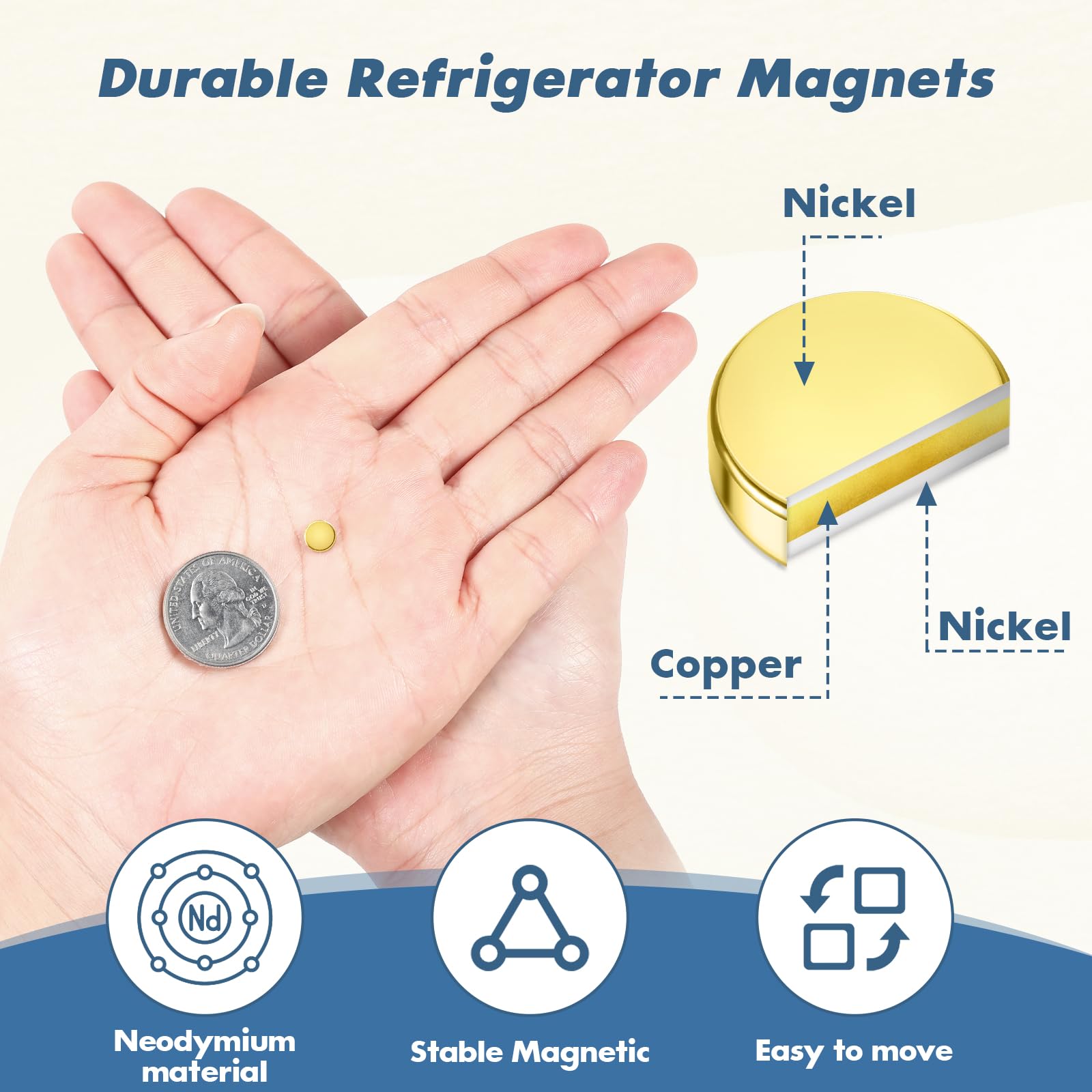 【Package Includes】Our package includes 50 small gold magnets, and they come with a plastic case for easy storage. Warm tips: Recommended age 13+.