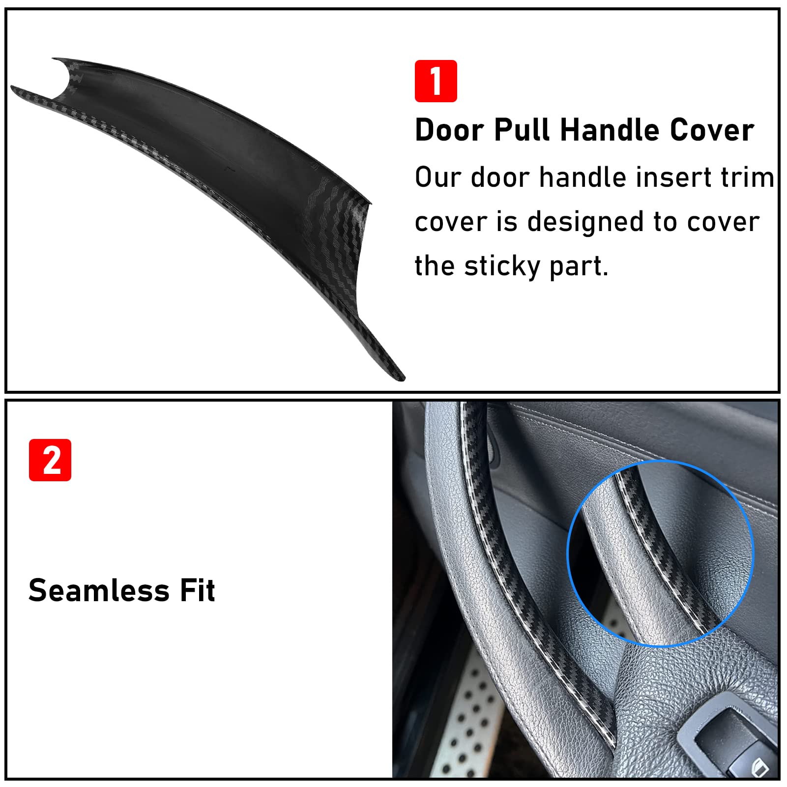 【Carbon Fiber Pattern Design】 Our Door Handle for E70/E71 is made of ABS+PC material instead of soft rubber, which are smoother and stronger. No more rubbed off with our Door Handles. Carbon Fiber Pattern Door Handles repair the sticking door handle of the original car, while improving the texture of the car interior. NOT REAL CARBON FIBER!
