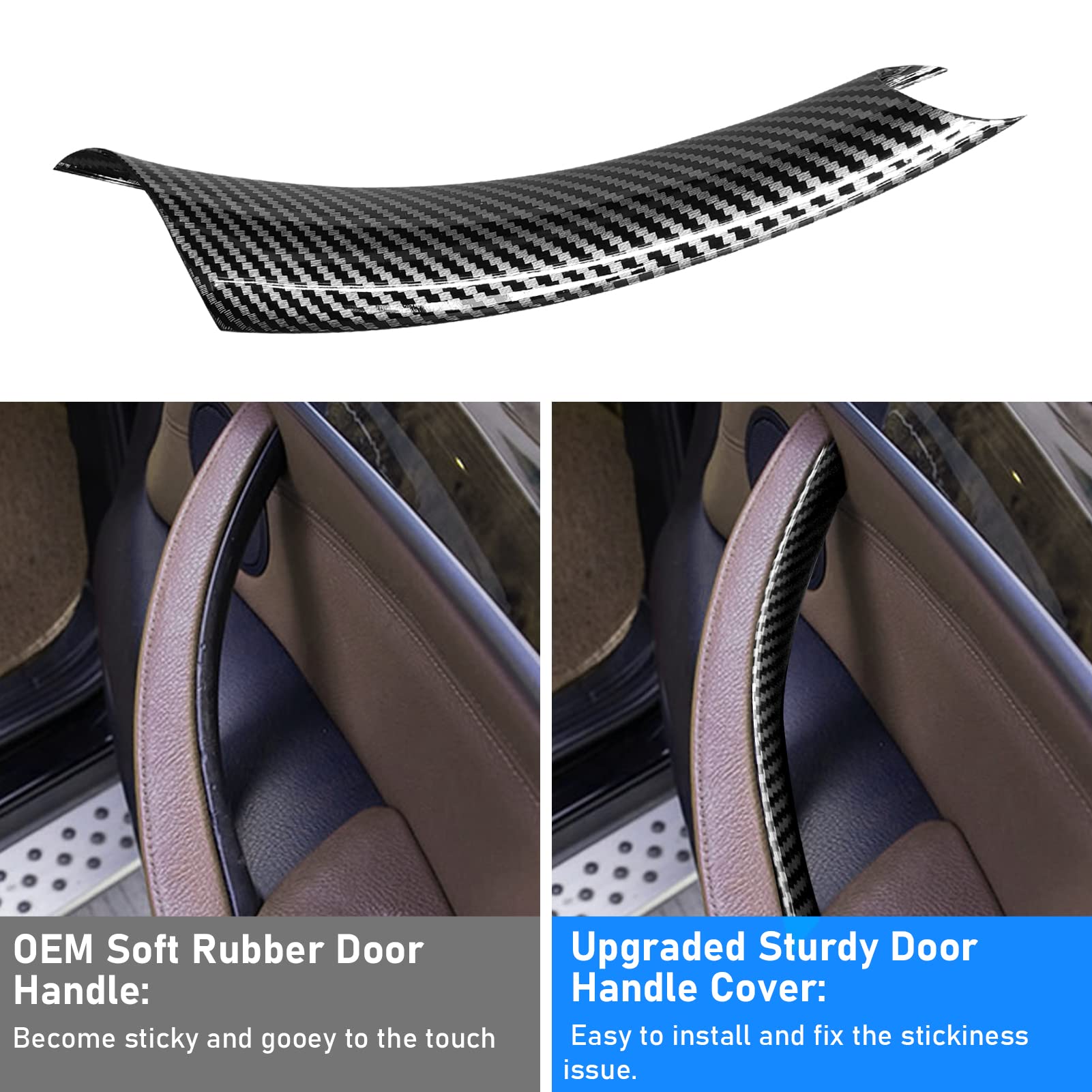 【Upgraded Door Handle Covers】 The original door handles melted and felt sticky when touched when getting in or out of the car. Before our door handle cover, the only way to repair the door handle was to replace this door panel. This handle cover is designed to cover the stickiness, tightly fit with the OEM Door Handles, no more sticky and melted door handles.