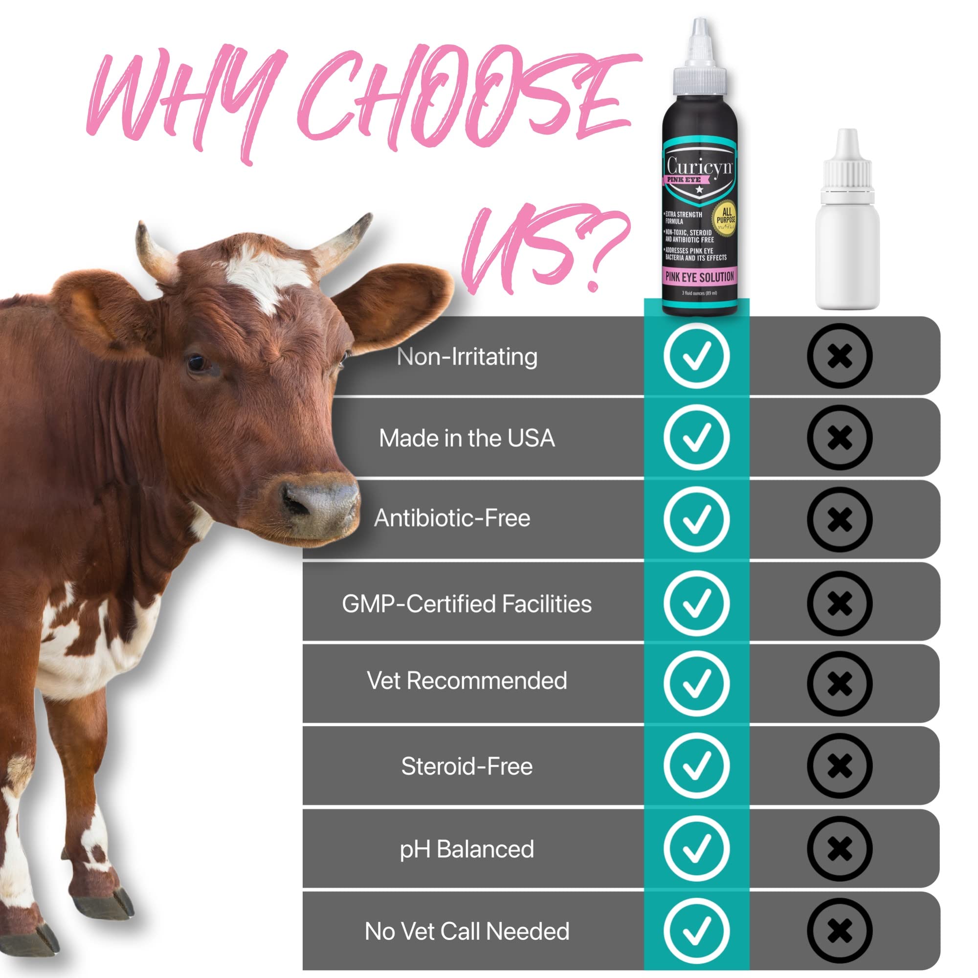 HELPS RESOLVE PINK EYE FAST in livestock and companion animals with Curicyn Pink Eye Solution. Our painless eye infection treatment for dogs and cats relieves irritation associated with conjunctivitis.