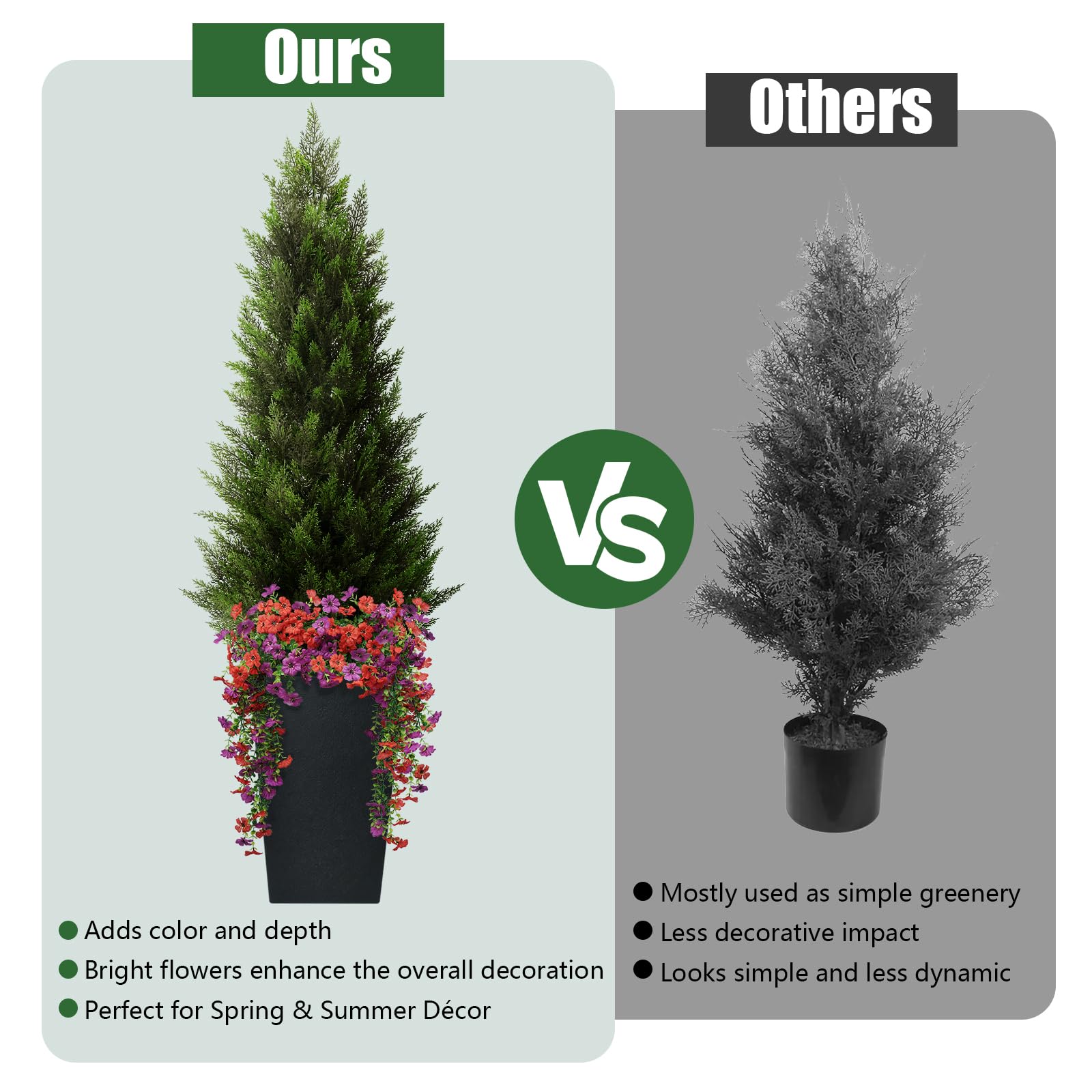 Multi-purpose Decoration: Are you still worried about having boring, monotonous decorations? Our artificial cedar topiary tree brings you endless possibilities! Whether it is for home, office, commercial space, or holiday decorations, this cedar tree can easily create a different atmosphere and style.