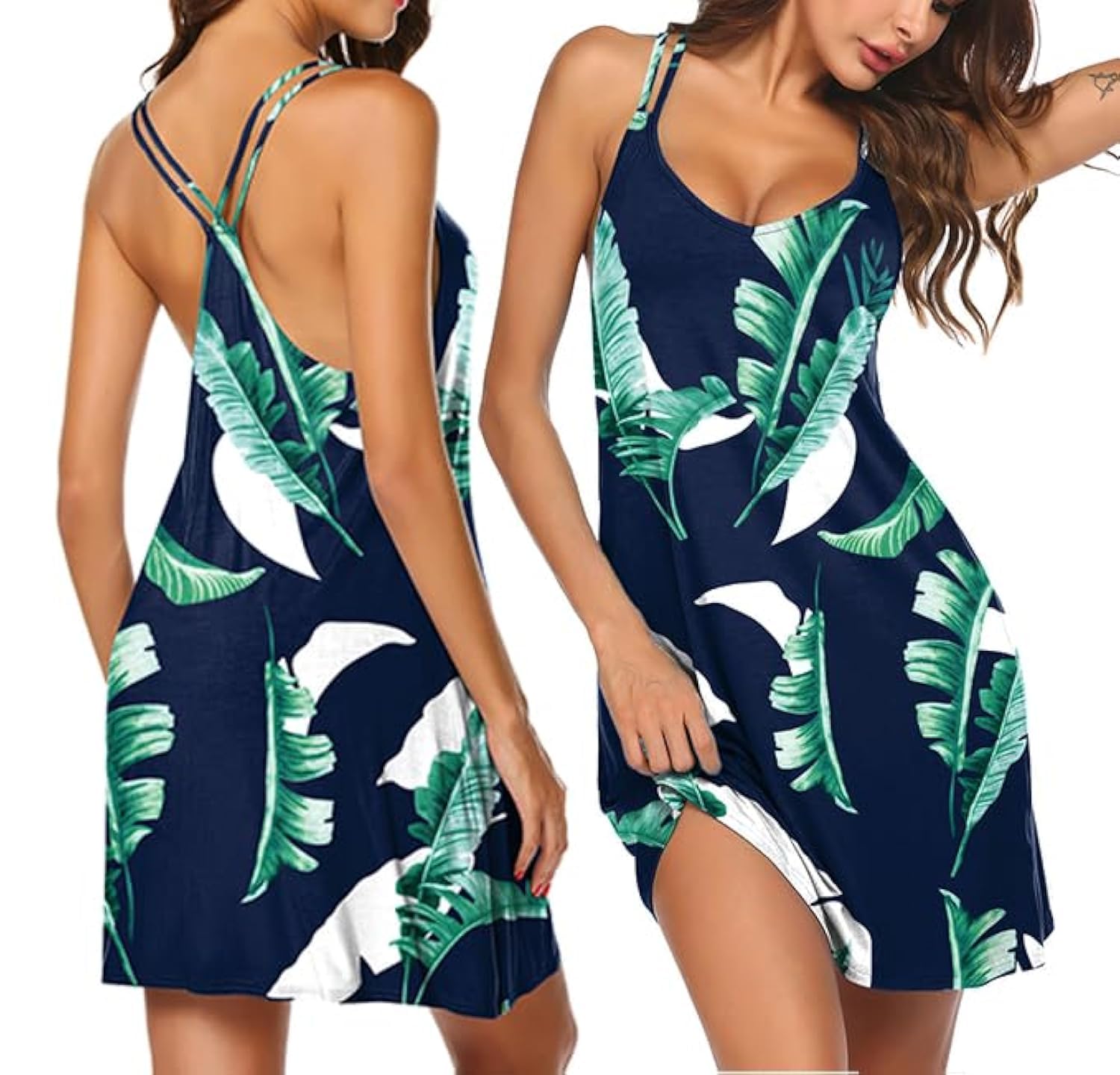 Material: The sleeveless nightgown is 95% Polyester and 5% Spandex. Stretchy breathable fabric with great touch, super soft and comfortable, makes it light and ideal for summer. Tips: Do not use a dryer
