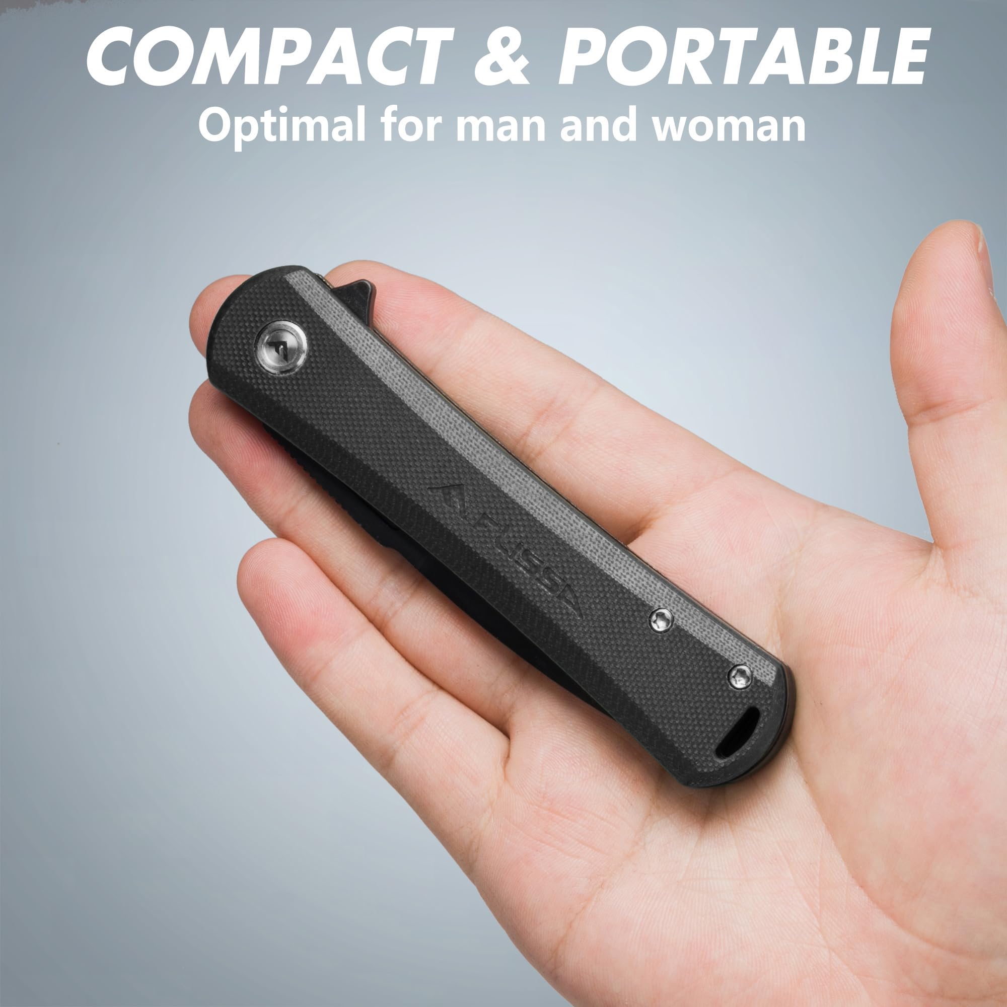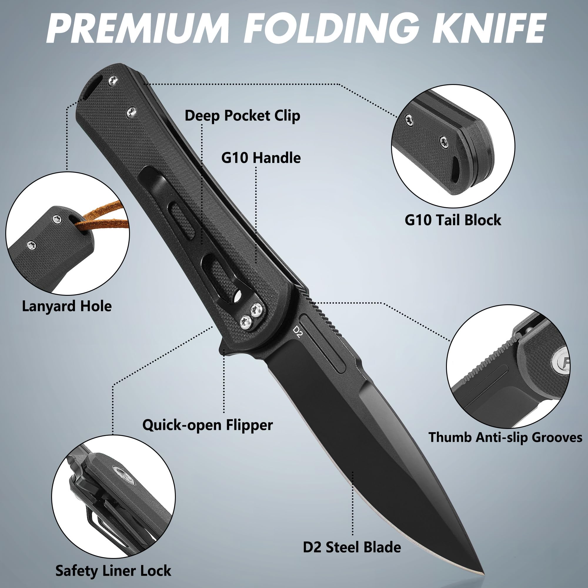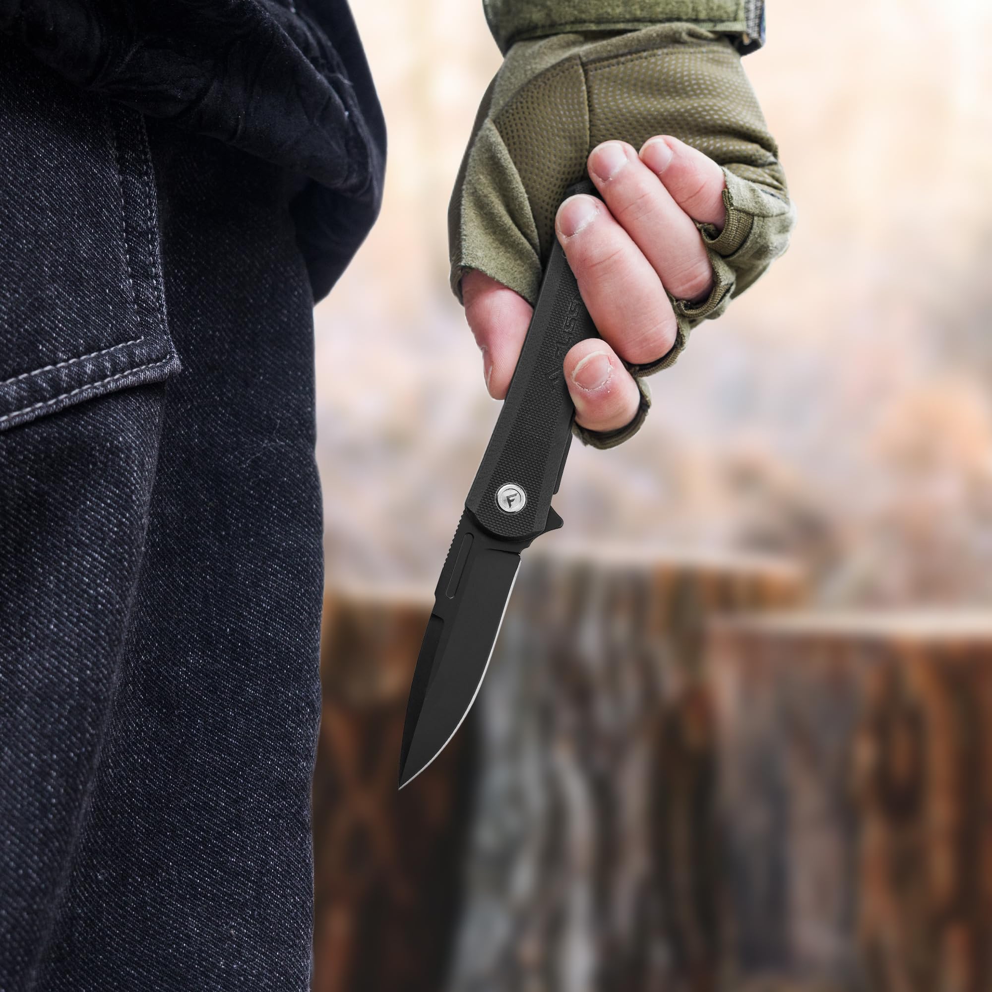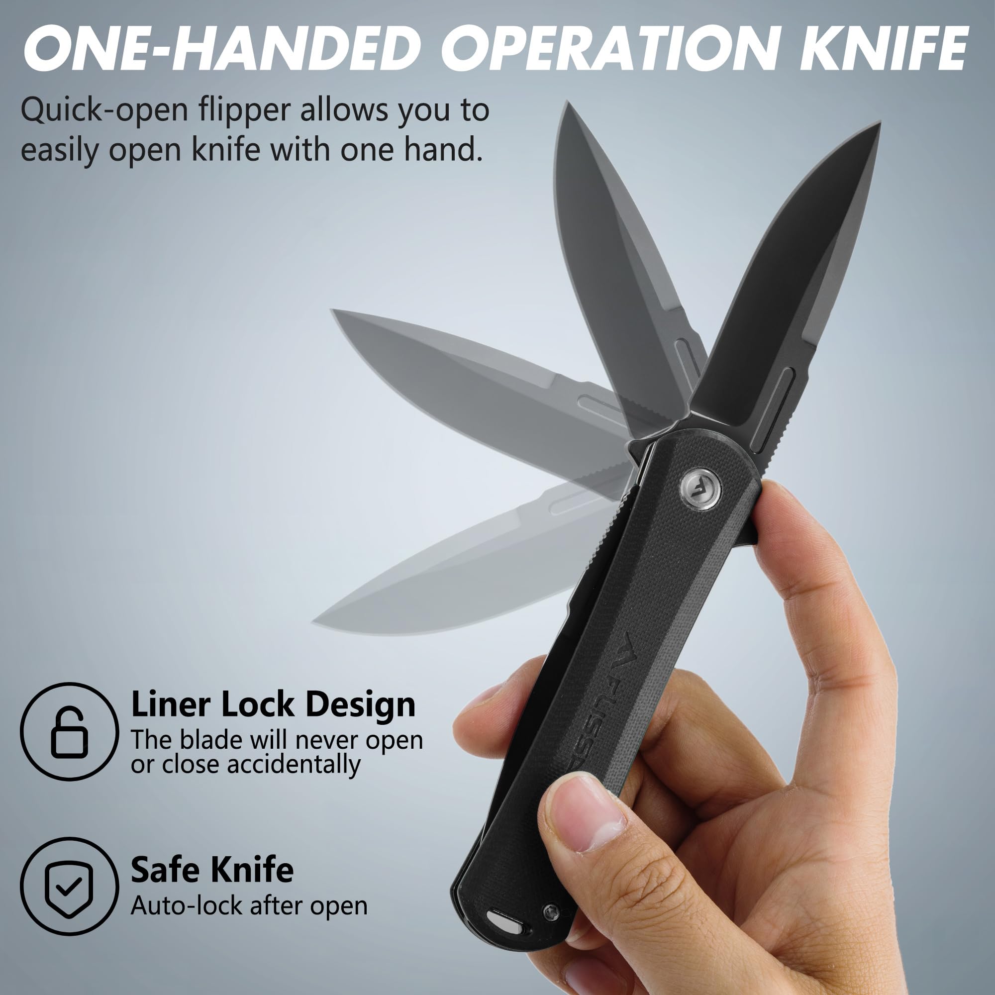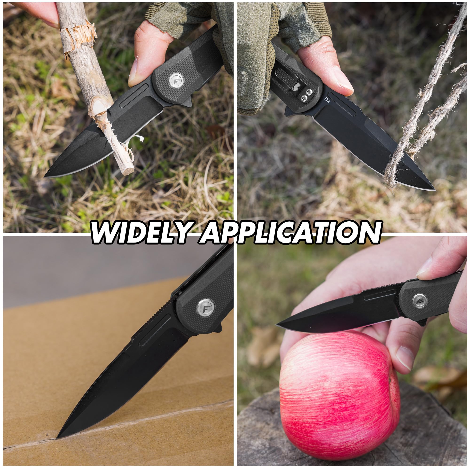 One-Handed Operation Knife: Quick-open flipper allows you to easily open knife with one hand. Safety liner lock design ensures the blade will never open or close accidentally and provide reliable and firm protection when you use the folding knife. The G10 tail block at the end of the handle ensures that when the blade is closed, the knife tip will never expose to the handle, ensuring your safety.