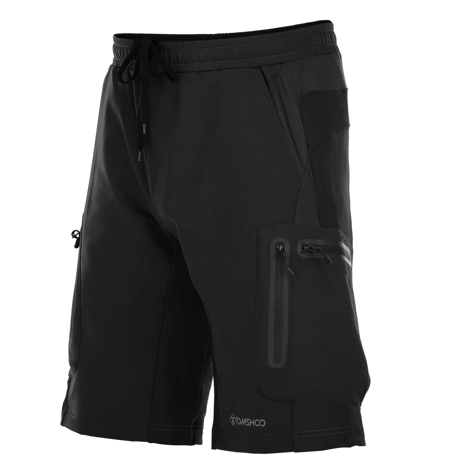 TOMSHOO Mountain Bike Shorts, MTB Cycling Riding Bike Shorts with Zipper Pockets, Quick-Drying Breathable Material, Lose-Fit Desgin, Color Black, Size L